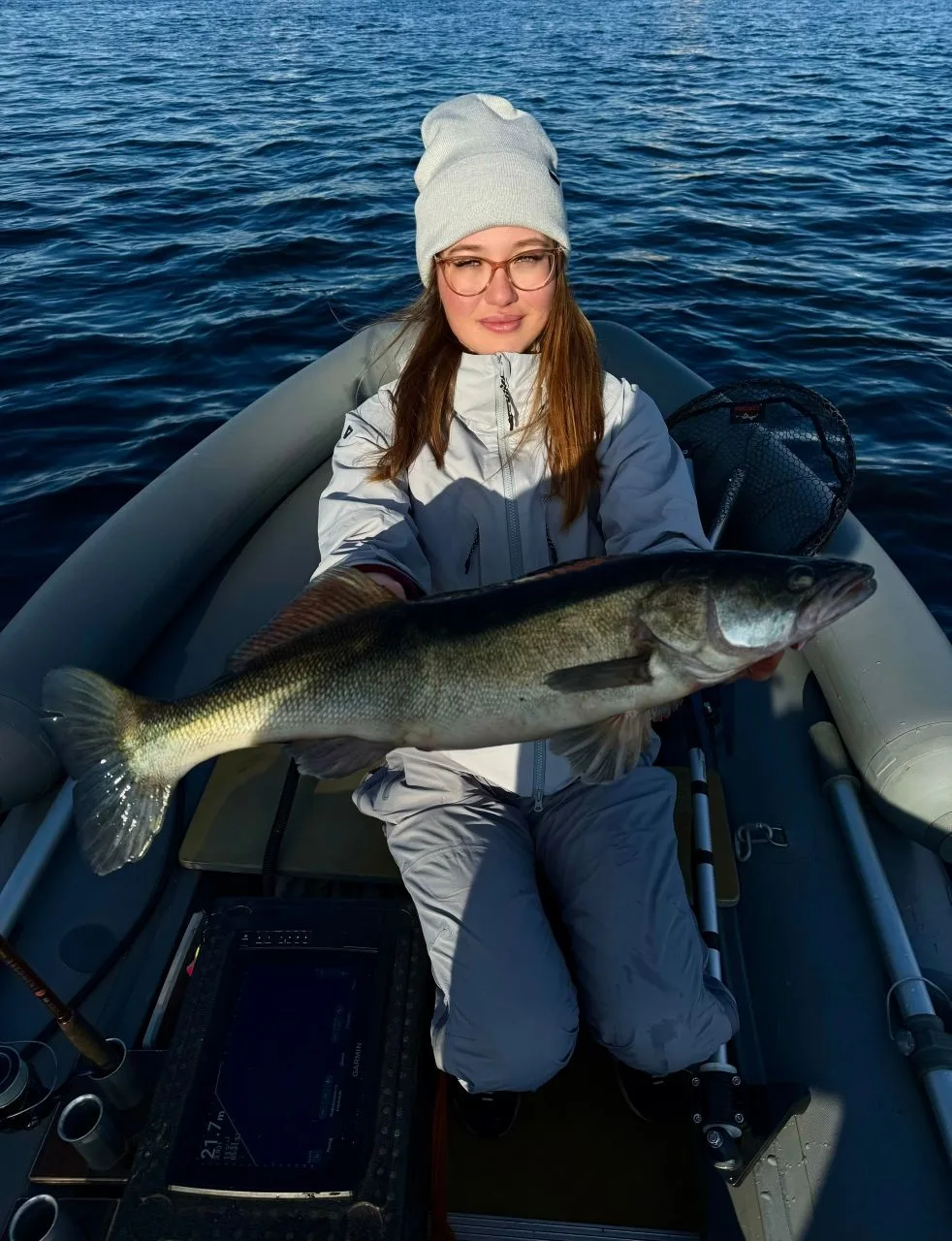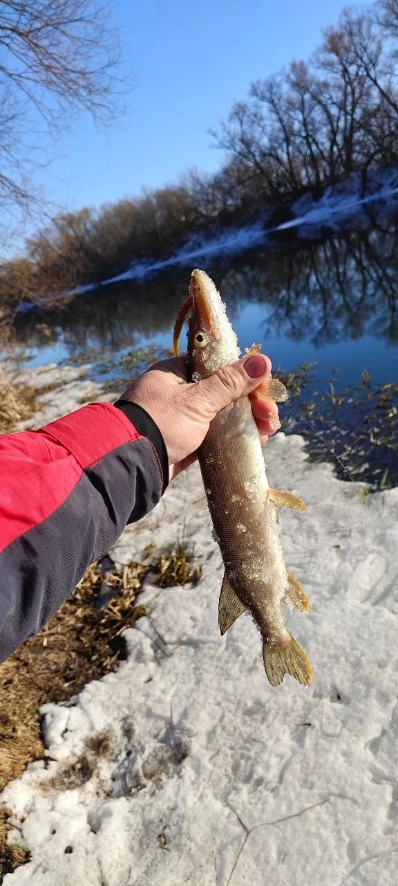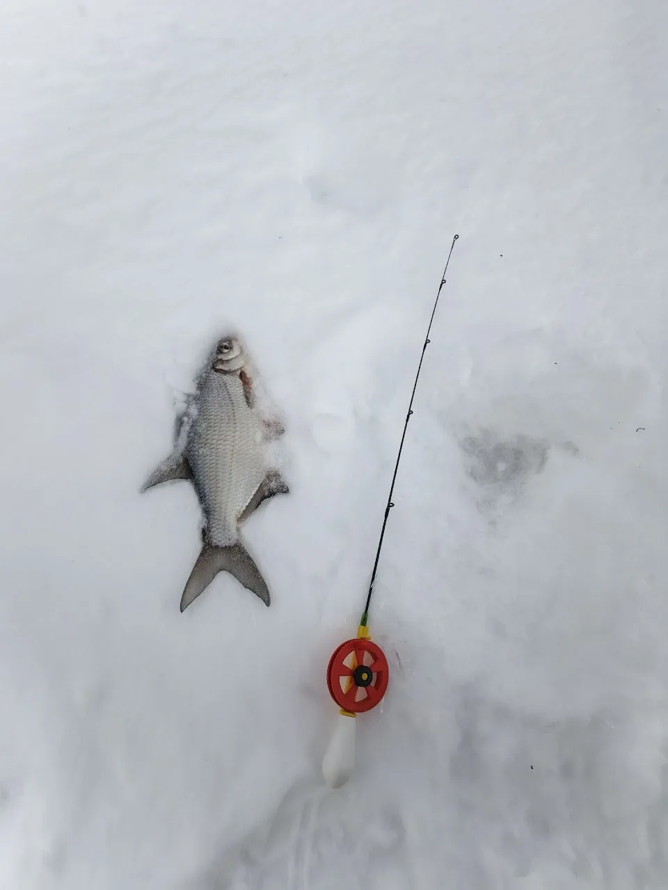 Тогда я взяла спортивное удилище для ловли форели, окуня и голавля и поставила маленький виб. Сыграв приманкой, я сделала паузу и начала наблюдать за поведением рыбы. Вдруг кто-то резко вылетел по направлению к приманке, поравнялся с ней и замер, не решаясь на поклёвку. Тогда пришлось использовать немного другую тактику: лёгкий мормышинг и медленное поднятие виба вверх. В тот момент рыба аккуратно прикусила приманку, я сделала резкую подсечку и сразу почувствовала сильное сопротивление, которое может дать не каждый судак. Это оказался мускулистый голавль, который после небольшой фотосессии отправился обратно в лунку😁