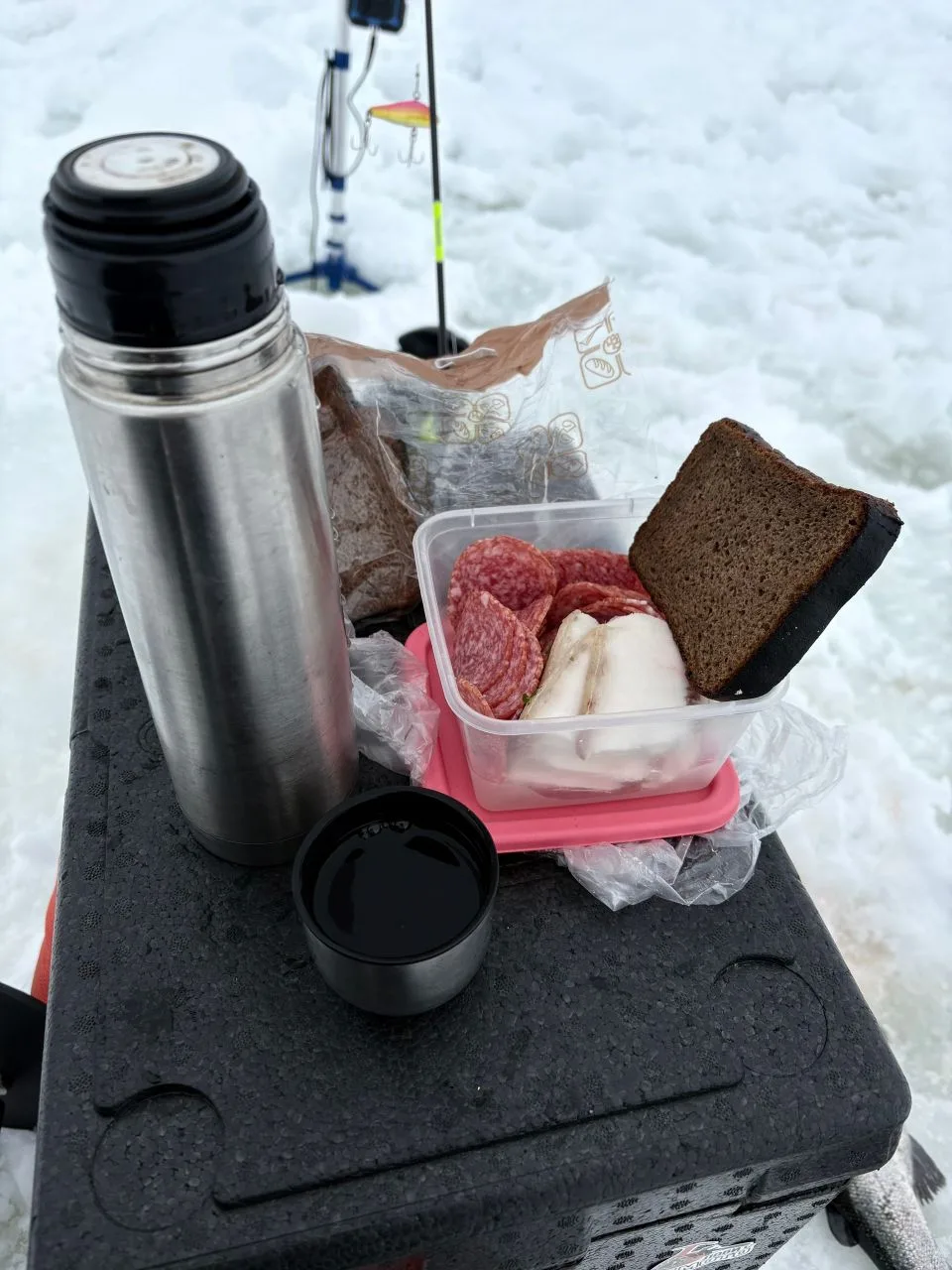 ❗Запомните,никогда не снимайте зимние сапоги в домике типа "Ну не удобно в них сидеть" ❗. Мое 33 летнее тело подумало что это повод уйти в спящим режим😅.И после лапши я 1.5 часа видел прекрасные цветные сны.Хорошо что друг позвонил узнать покупать ли мотыля? И я пытаясь"не спалиться", строгим и бодрым голосом ответил не клюёт,ничего не покупай 😁.Когда я пришел к лункам рыбы уже не было😞.Но почему?Странно все это конечно 🤨.Хотя знаете в 21 веке ехать на рыбалку за рыбой.... Можно,а зачем? 🤔.