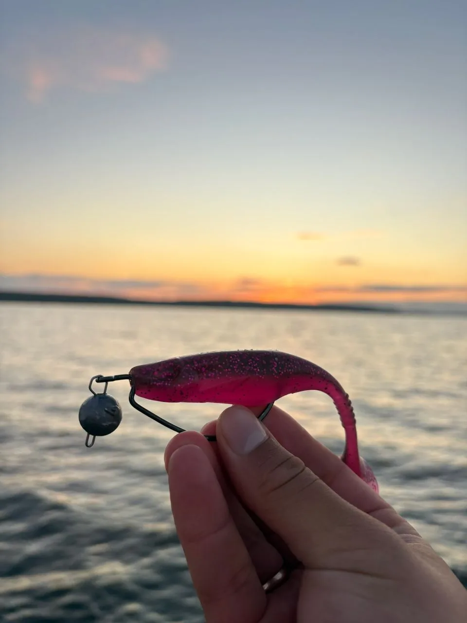 После 10 часов активность судака значительно снизилась, и, чтобы добиться поимки, приходилось экспериментировать с цветами резины. К моему удивлению, в этот раз блистательно отработали слаги яркой расцветки PAL 03. В связи с сильным течением мы использовали веса 32-40 граммов, а катушкой делали по 2-3 оборота, применяя несколько секретных хитростей.
