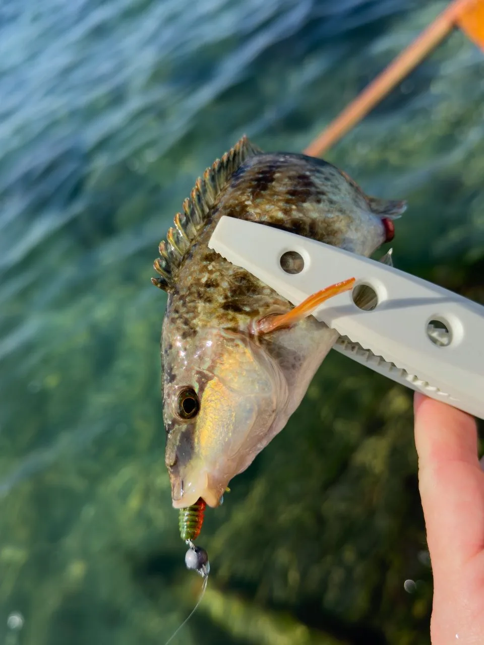 Есть тут свой интерес, поиски активной рыбки, эксперименты с подачей и проводкой. Попытки прочитать дно. И эксперименты увенчались успехом. Морские обитатели хорошо отзывались на всевозможные креатуры. В фаворите был Jump Craw 2, от ESOX. Экспериментировал с цветами приманки с отгрузкой, классический джиг - риг на 2 и 3 граммах хорошо себя показали.