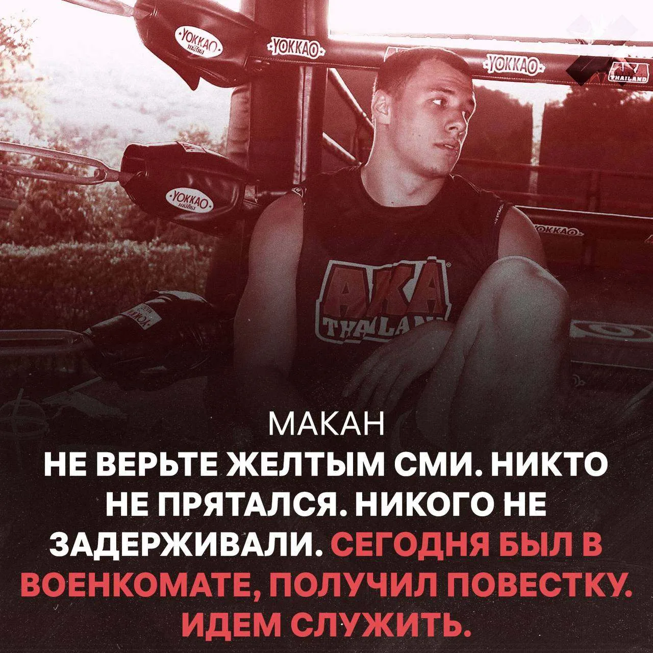 Макан заявил, что прибыл в военкомат самостоятельно и пойдет служить.