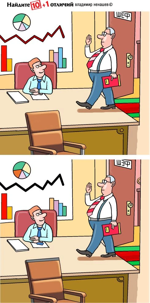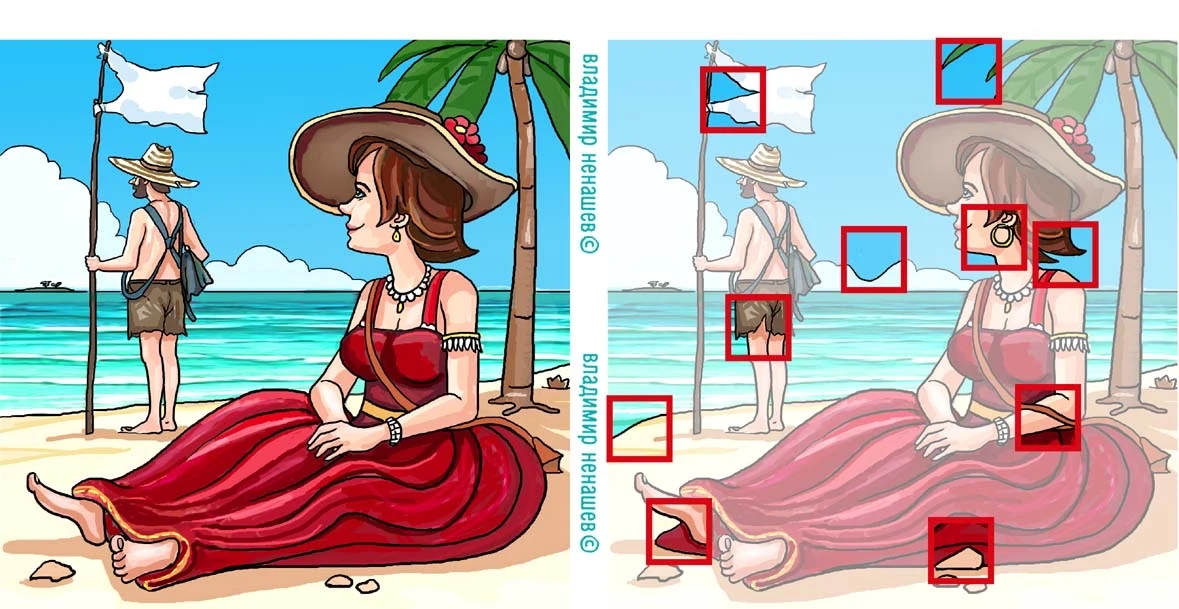 Тесты на внимание "10 отличий" от Владимира Ненашева и позитивные антистрессовые рисунки для настроения