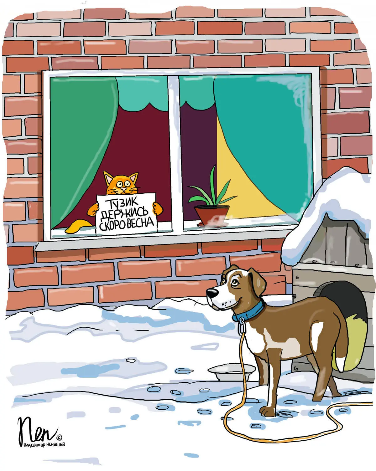 Карикатуры про зиму и надежды на весну. Наш канал есть на Дзене. Так и называется "Ура жизни". Там много чего имеется! Мы не навязчивые. Поставили и забыли