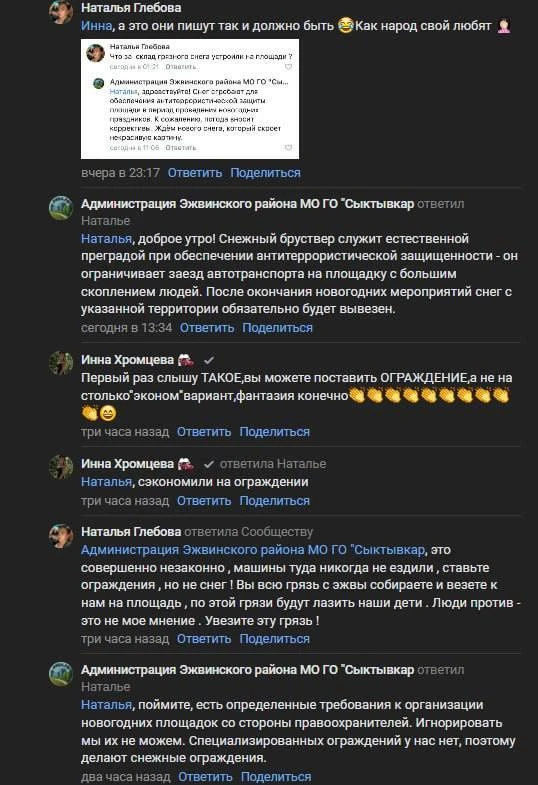 В Сыктывкаре чиновники сгребли грязный снег на площадь и назвали это «антитеррористическими отвалами».