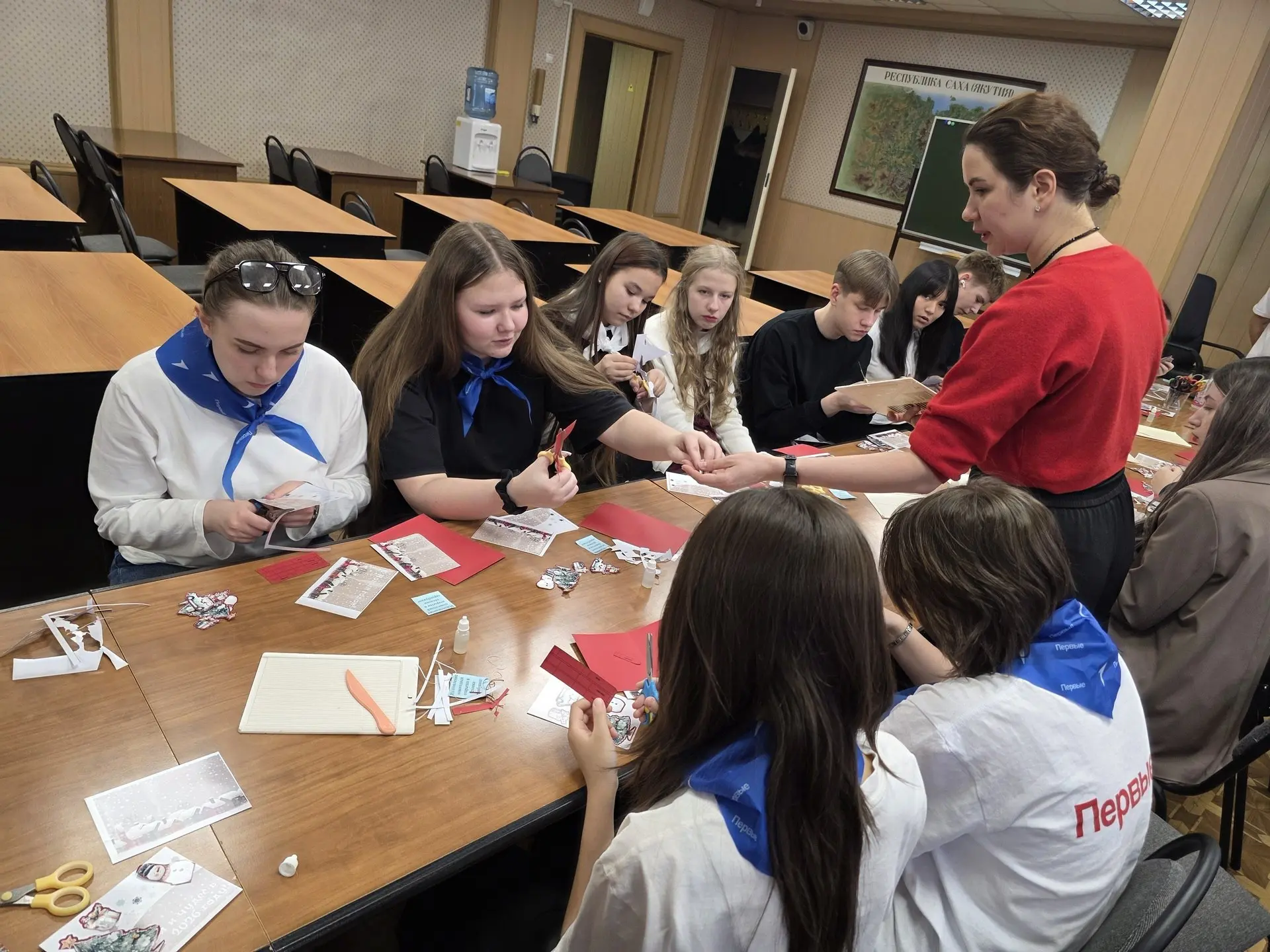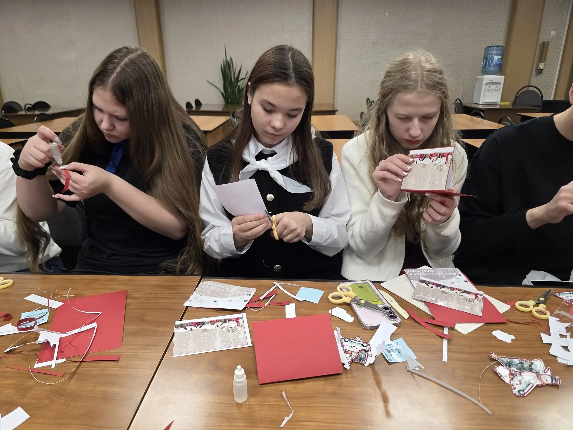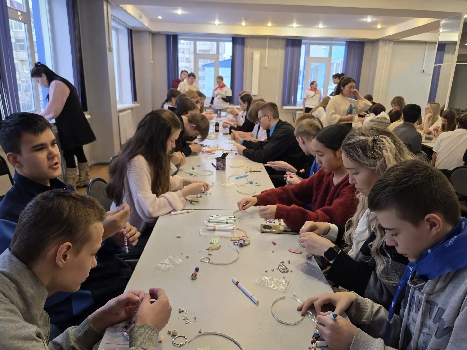 Праздничная программа включала в себя интерактивные мастер-классы от педагогов дополнительного образования ЦРТДиЮ. Ребята смогли окунуться в мир творчества и своими руками создать неповторимые новогодние подарки и украшения. Мария Александровна Корнеева познакомила участников с техникой скрапбукинга, обучив их изготовлению оригинальных новогодних открыток. Лидия Николаевна Бородий провела мастер-класс по созданию стильных брелоков для рюкзаков. Саина Александровна Семенова научила ребят делать традиционные обереги-сувениры, а Наталья Руслановна Меркулова раскрыла секреты создания ярких новогодних игрушек.