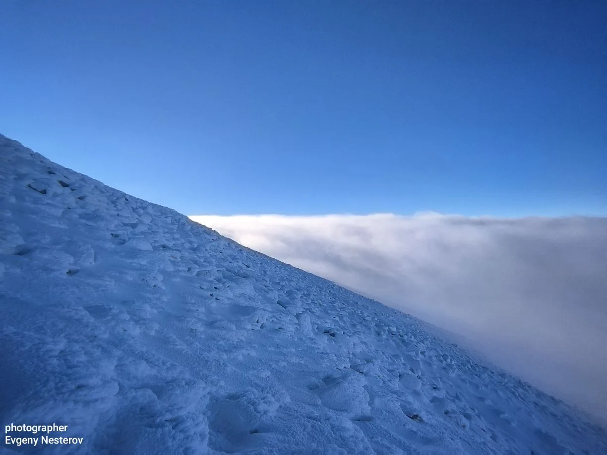Подведя итог подъёма можно сказать, что побывал выше облаков, словами это никак не описать. Поднимаешься и видимость наверное менее 100 метров, низкая температура, кажется что наверху не будет ничего видно. Но приближаясь к вершине, понимаешь, что там наверху солнечная погода. И лучи солнца настолько теплые, что никак не можешь поверить, ощущение холода, несколько сотен метров назад. А вид на самой вершине это не что-то, бескрайние облака, наверное не на десятки километров, а на сотни.