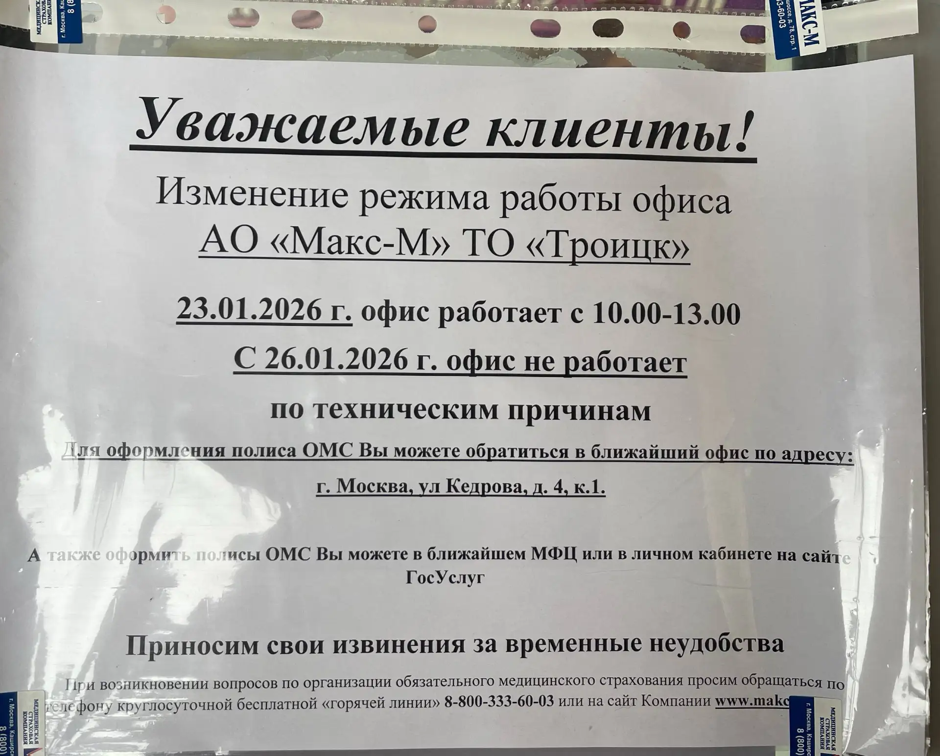 Теперь закрылся офис страховой компании «Макс-М». Больше оформить полис ОМС в нашем городе негде.