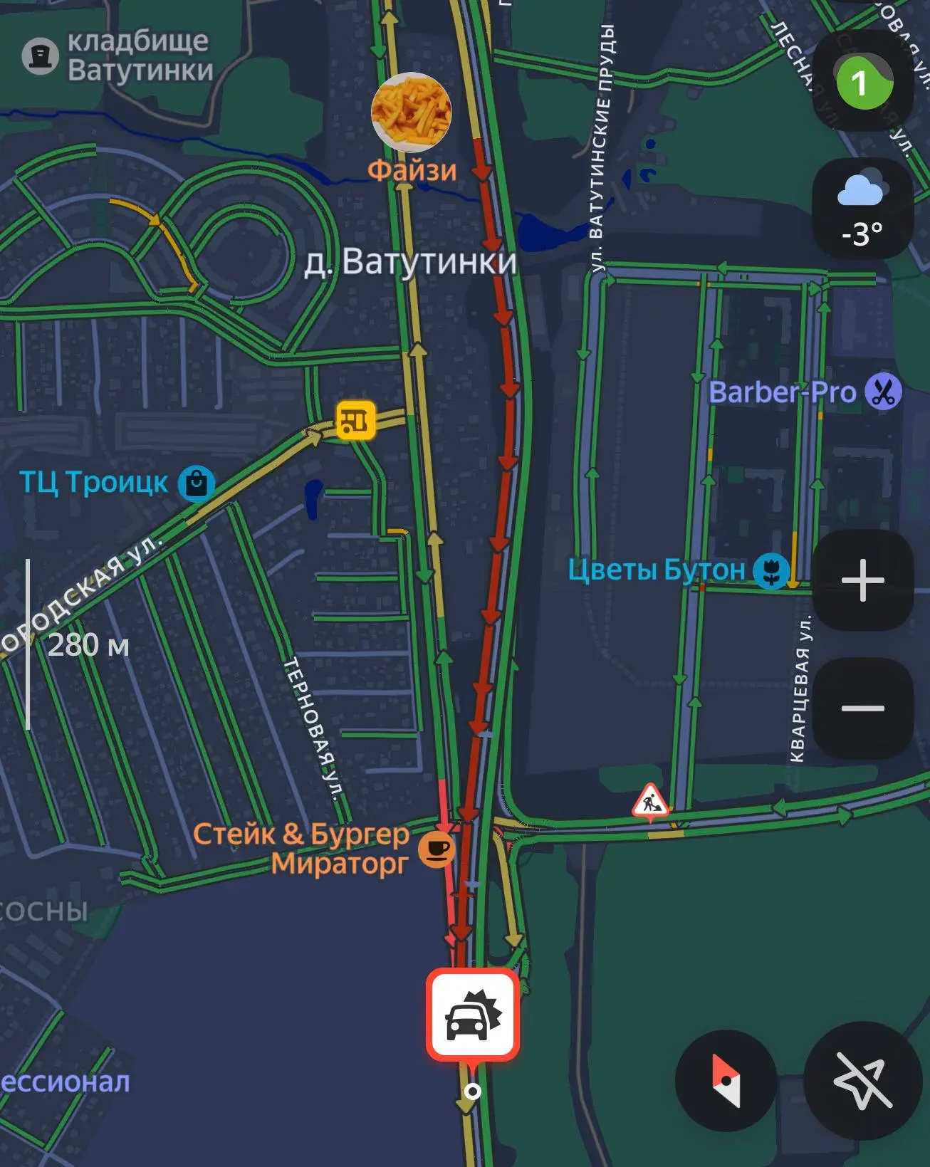 Возле 1-й Нововатутинской 5, вчера в 9:50 водитель вылетел на встречку, врезался в столб и чуть не снёс людей.