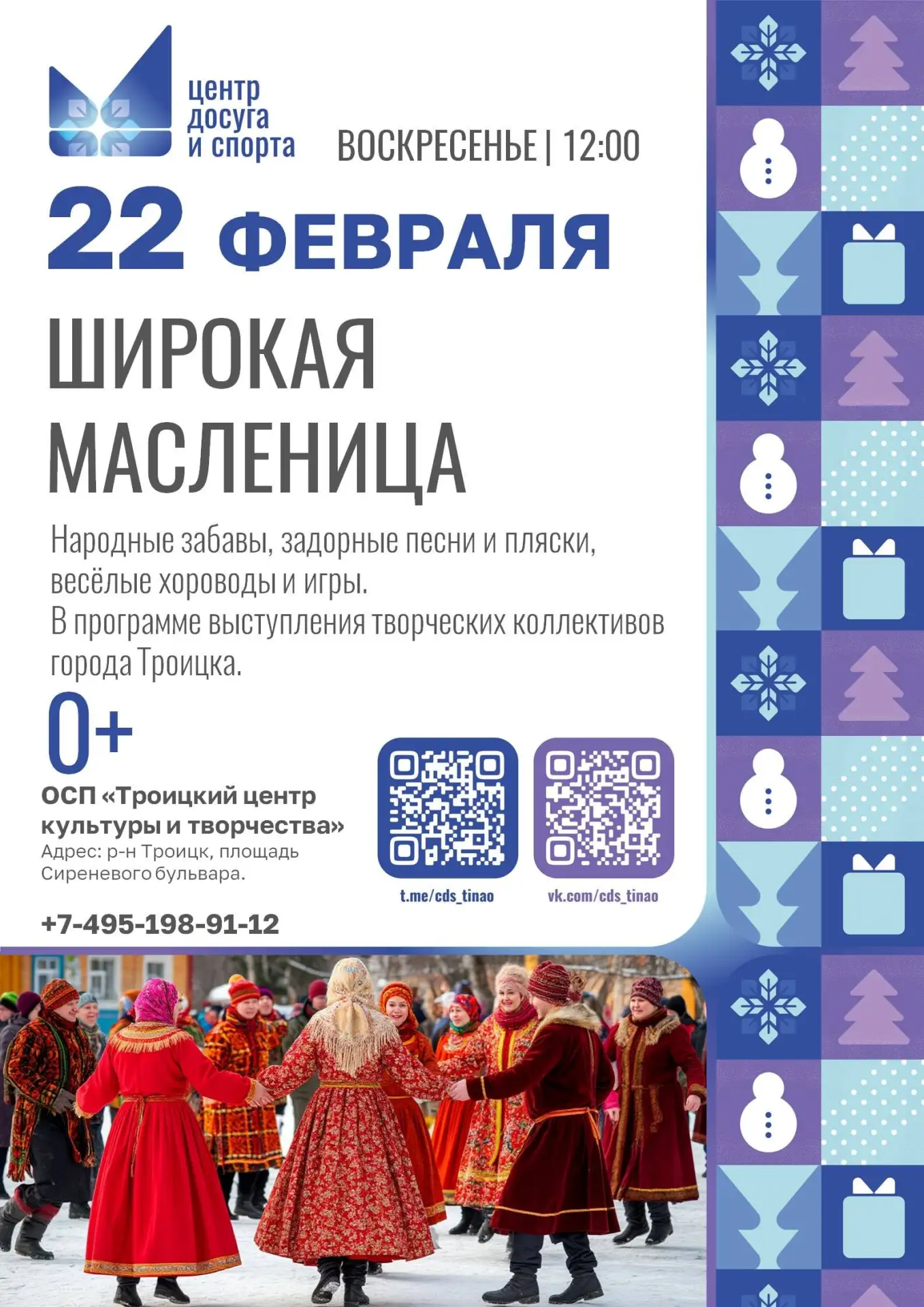 🥞 Масленичные гуляния пройдут в районе Троицк.