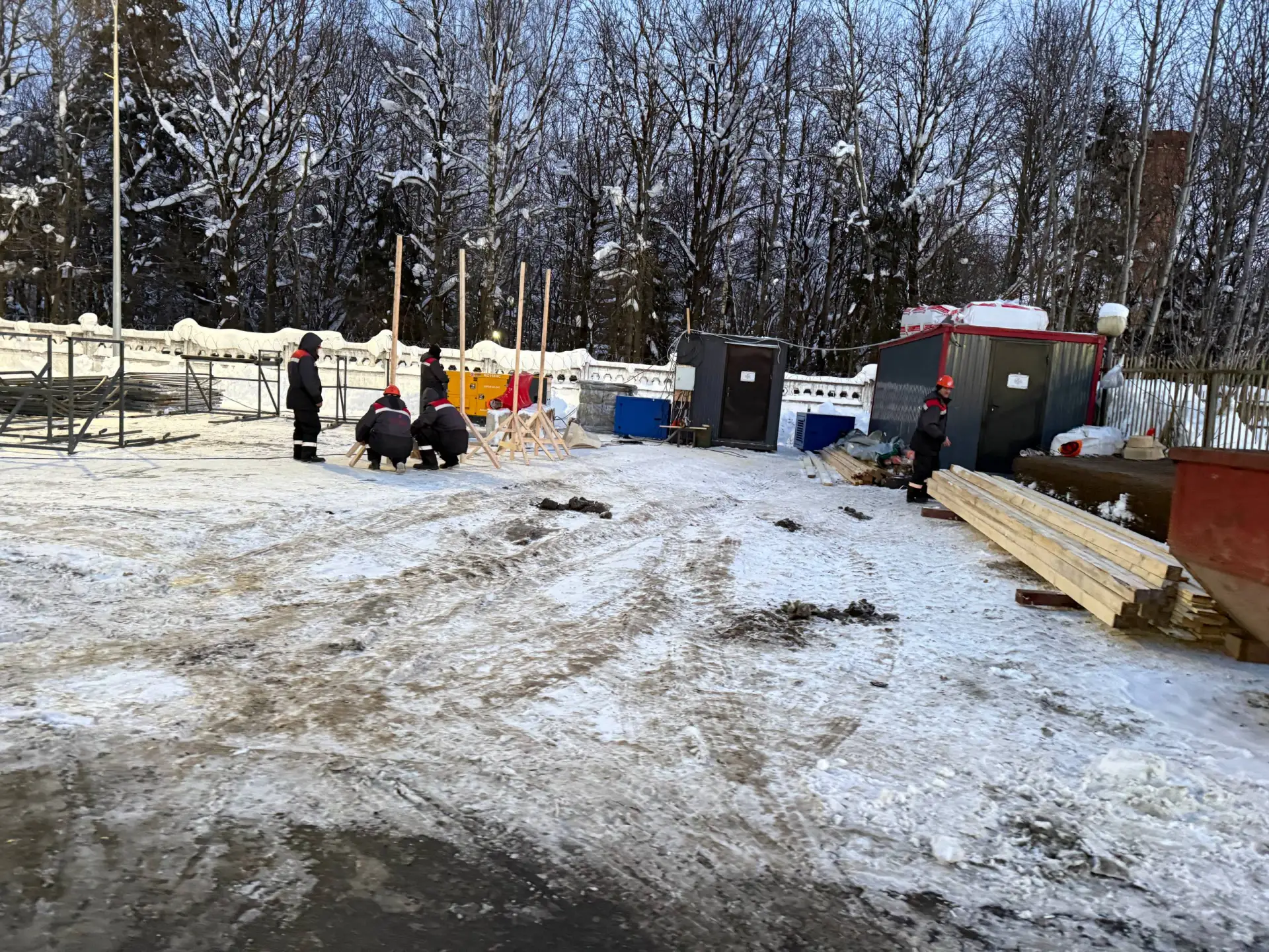 На месте строительной площадки метро сейчас ведутся работы: подготавливают столбы освещения, расчищена большая площадка, установлено 4 бытовки.