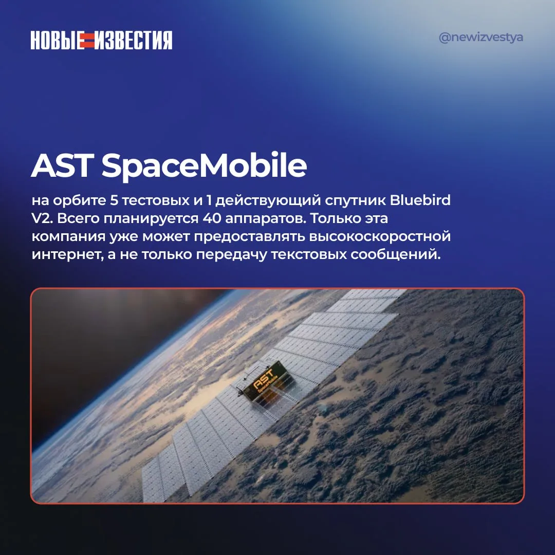 Но тут он в роли догоняющего. В этом году на орбите начнет работать спутниковая группировка от компании AST SpaceMobile, которая благодаря спутникам BlueBird предоставит связь и высокоскоростной интернет в любой точке планеты без каких-либо дополнительных устройств.
