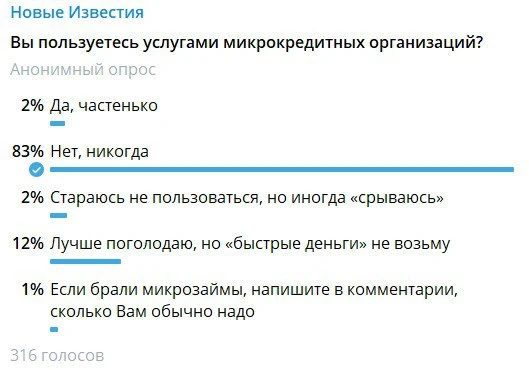 Судя по результатам опроса, займы в микрофинансовых организациях у наших подписчиков не в почете. Как и сами эти организации