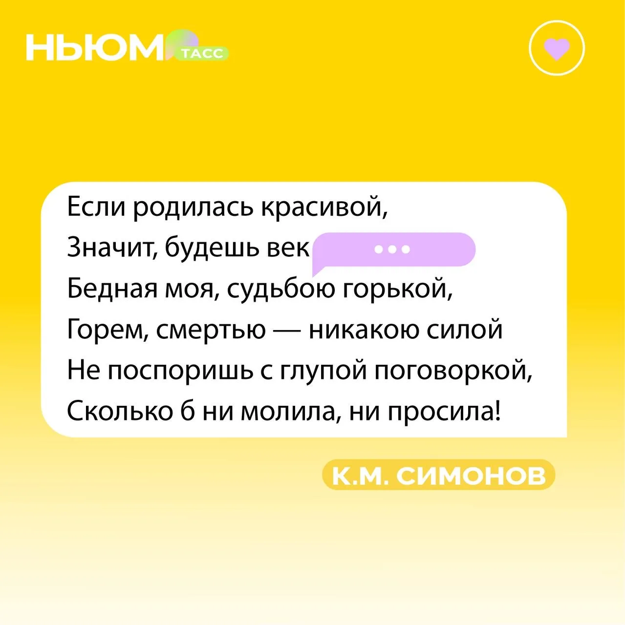 В известном стихотворении Константина Симонова спрятали слово. Попробуйте угадать, какое.