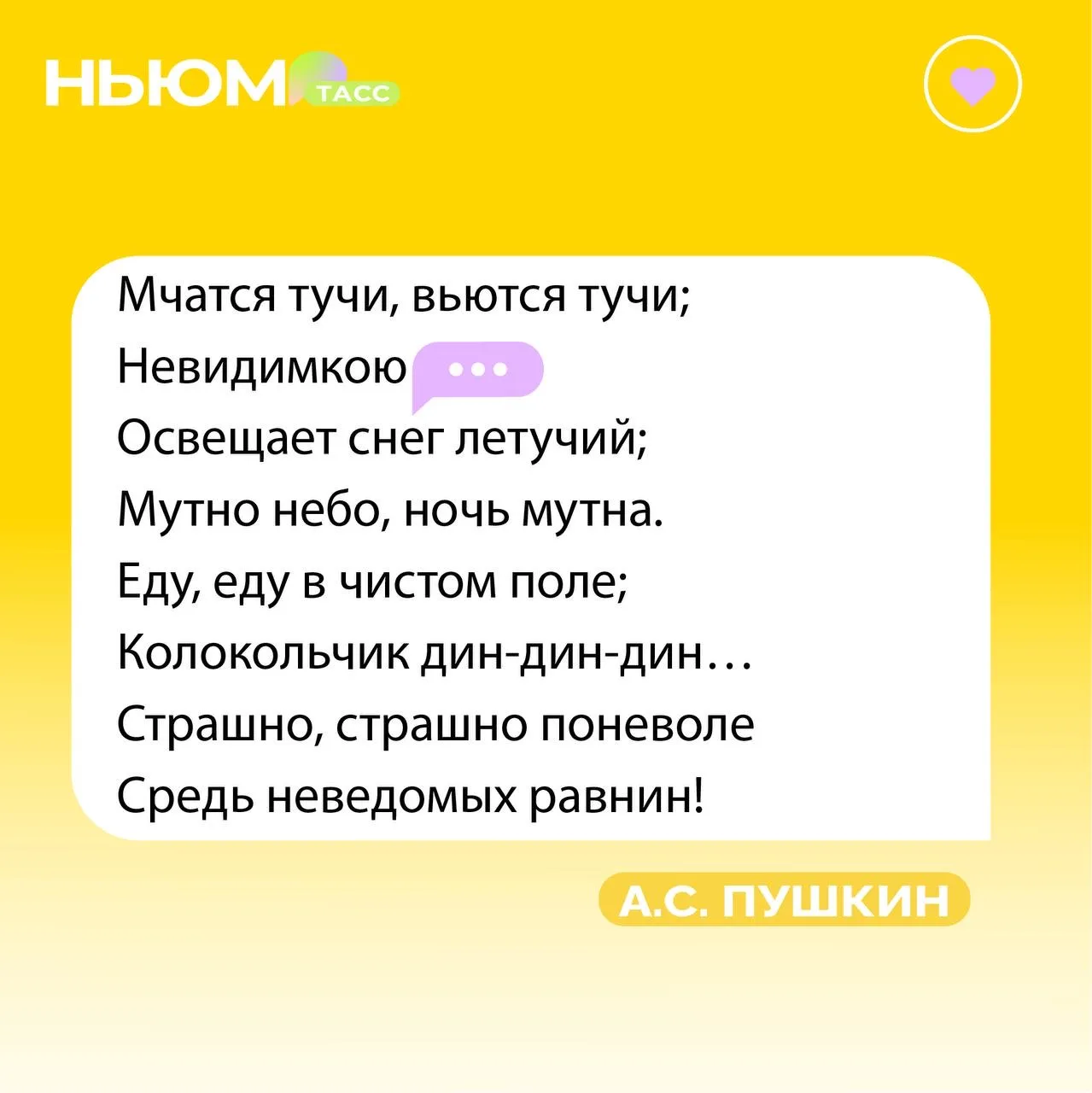 В известном стихотворении Александра Пушкина спрятали слово. Попробуйте угадать, какое.