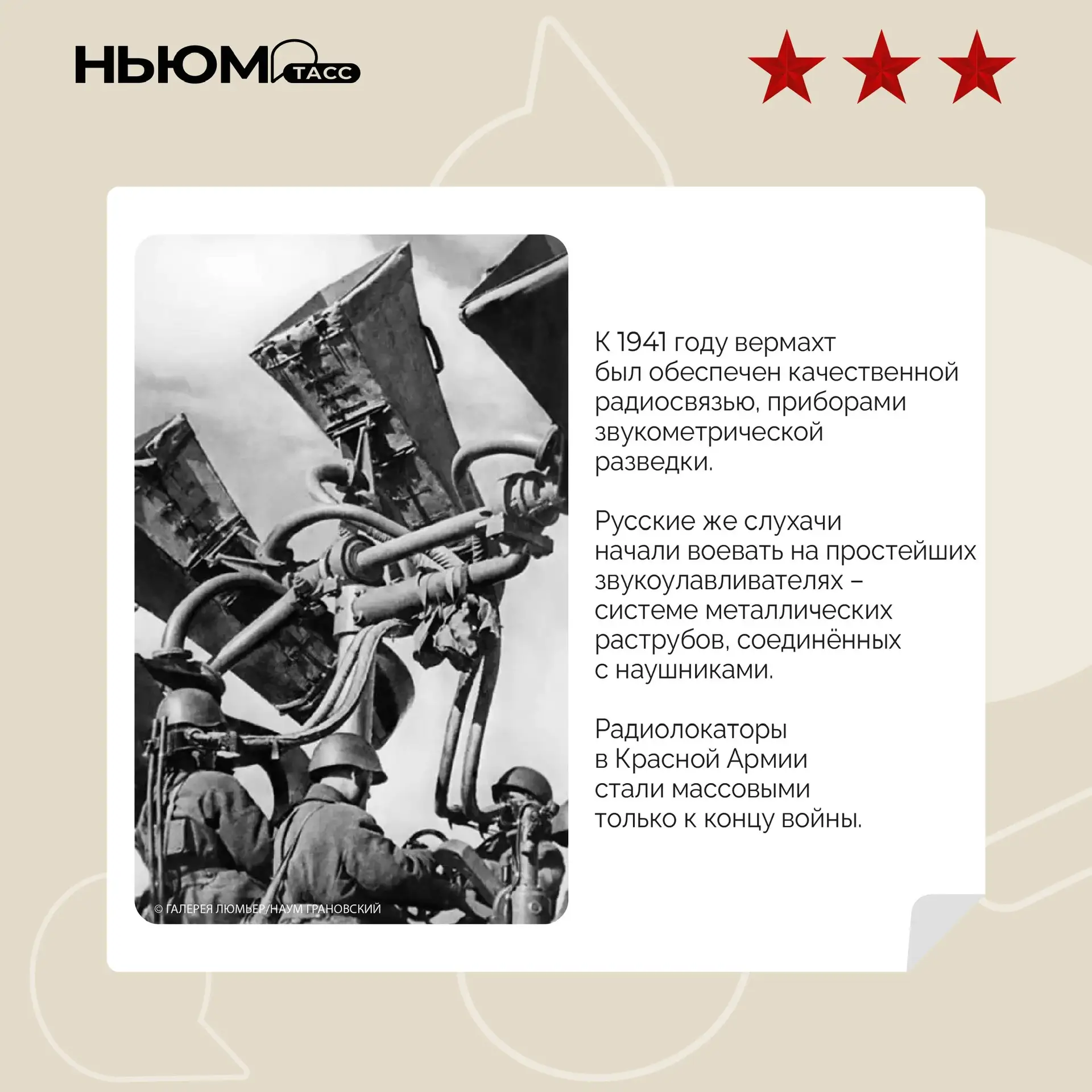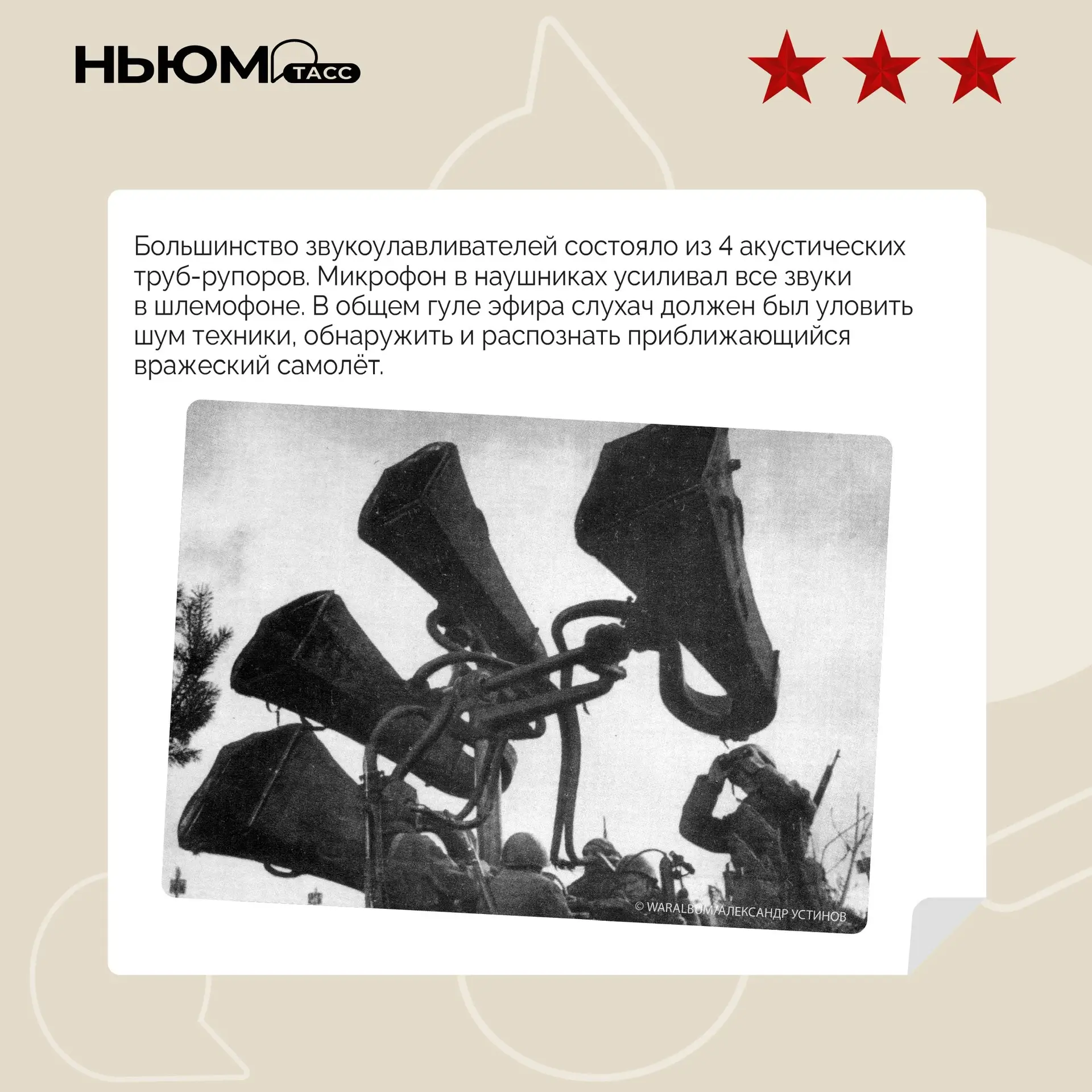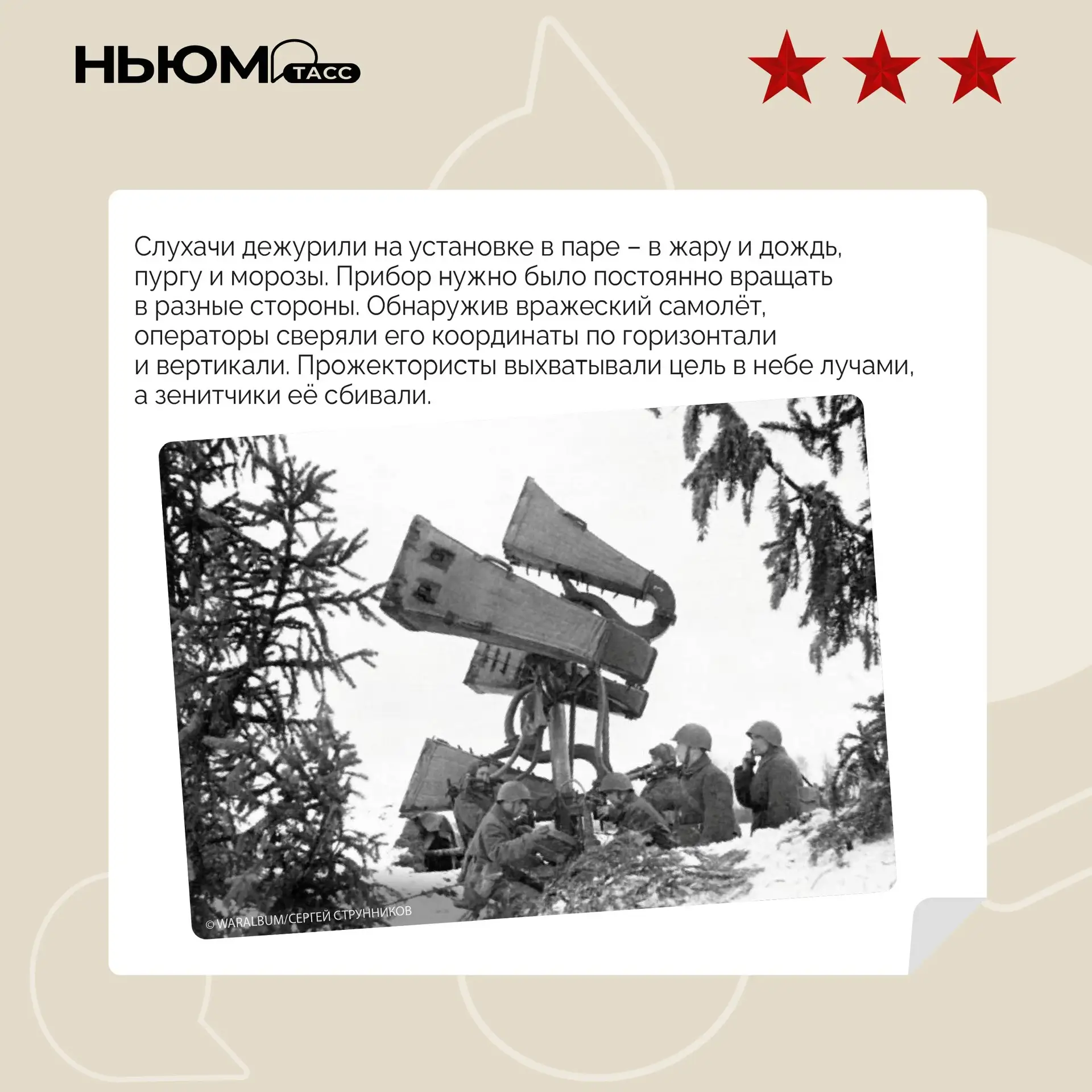 За несколько километров засекали гул вражеского самолёта. Различали модели машин по звуку моторов. Листайте карточки о работе операторов-слухачей Великой Отечественной войны.