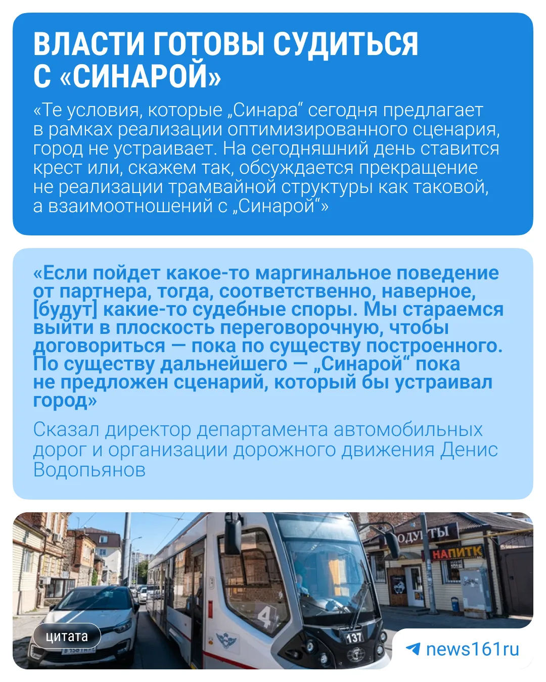 Администрация Ростова готова обратиться в суд, если переговоры с «Синарой», реализующей проект скоростного трамвая, зайдут в тупик. Об этом заявил директор департамента автодорог Денис Водопьянов.