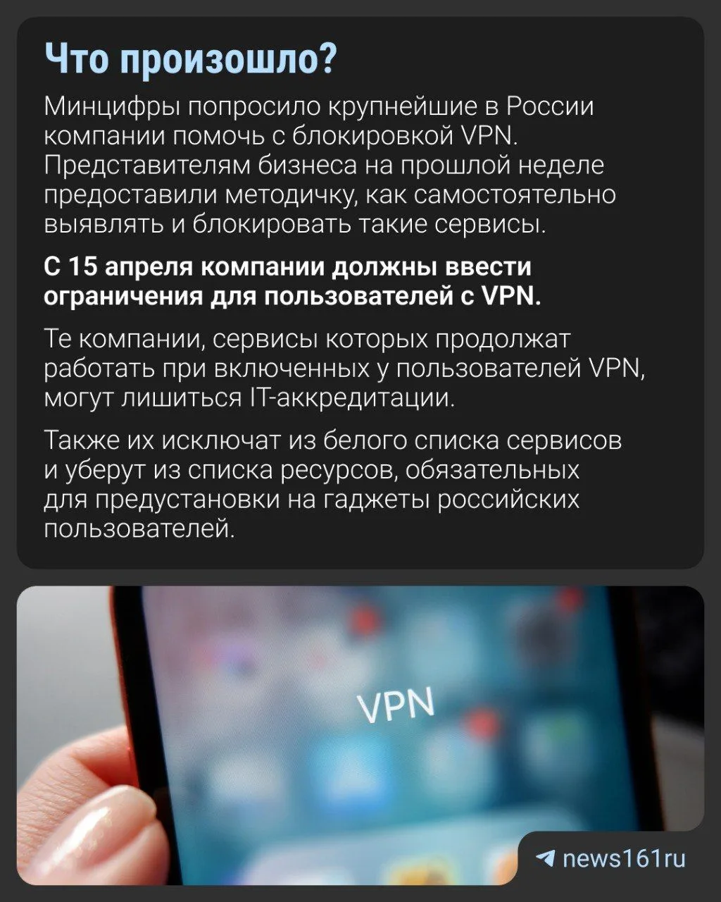 С 15 апреля должны ввести ограничения для пользователей с включенными VPN, а также выявлять тех, кто пользуется такими сервисами.