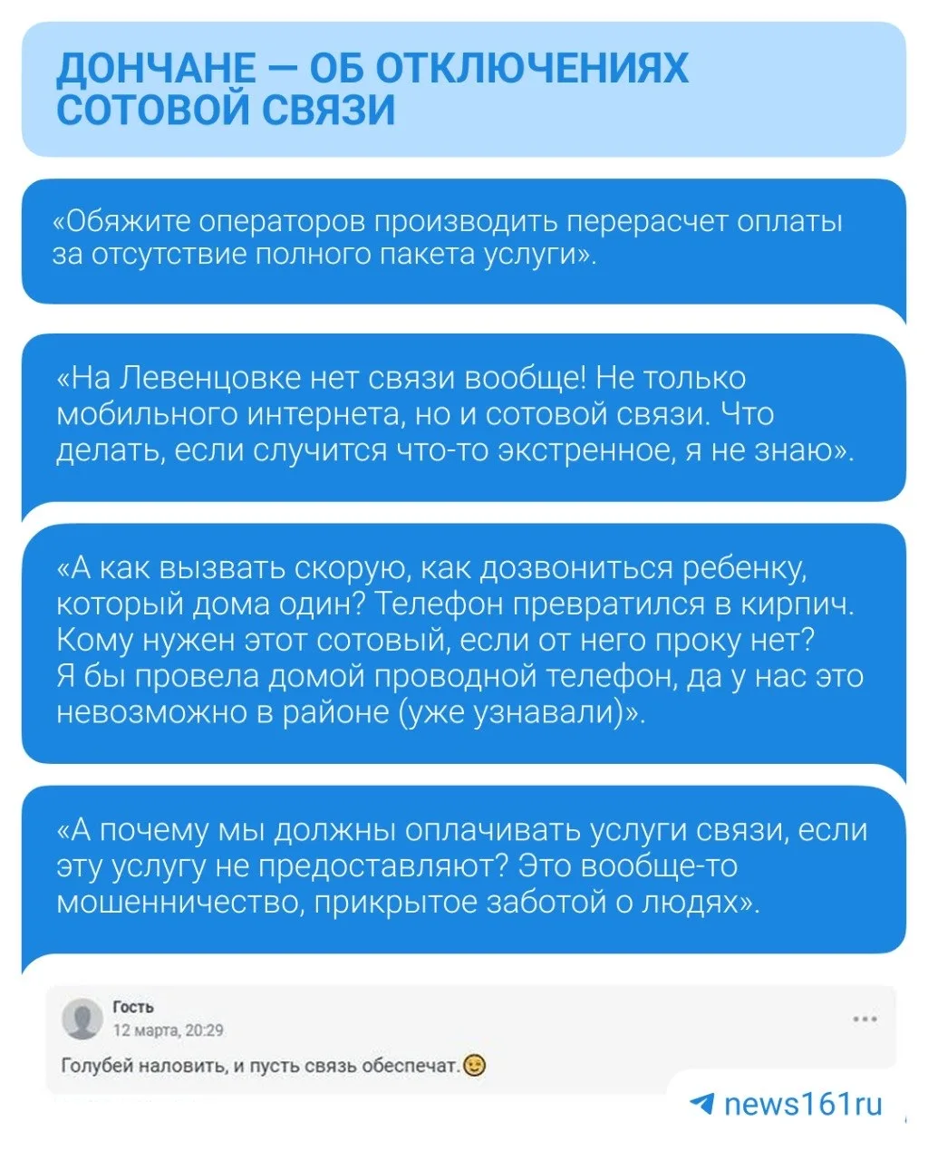 Жители региона жаловались на отключения сотовой связи. Минцифры Ростовской области объясняли, что ее отключают ради безопасности. Что на это думают ростовчане, читайте в карточках @news161ru.