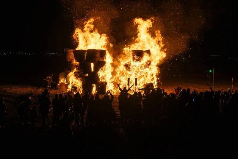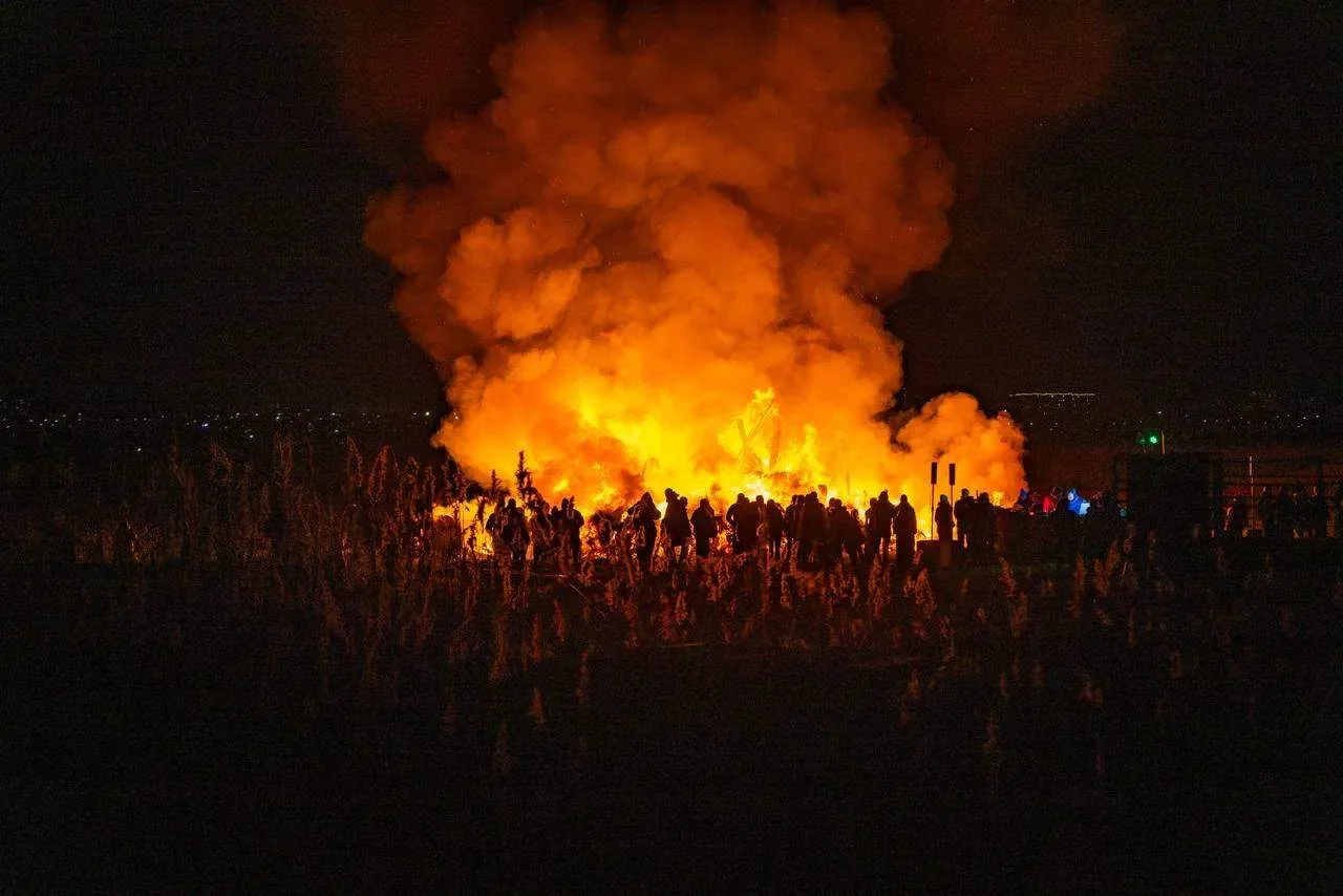 В парке «Киммерия» сожгли масштабную архитектурную инсталляцию из 64 стогов сена.