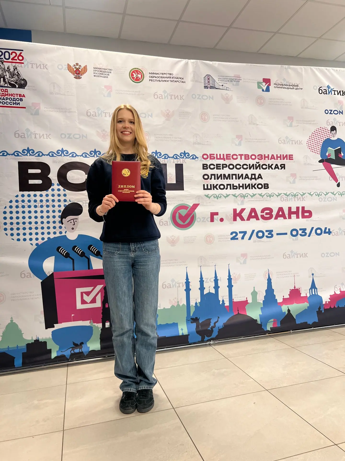 Юбилейный, сотый диплом 3 апреля получила Дарья Лазуренко — трехкратный призёр заключительного этапа ВсОШ по обществознанию.