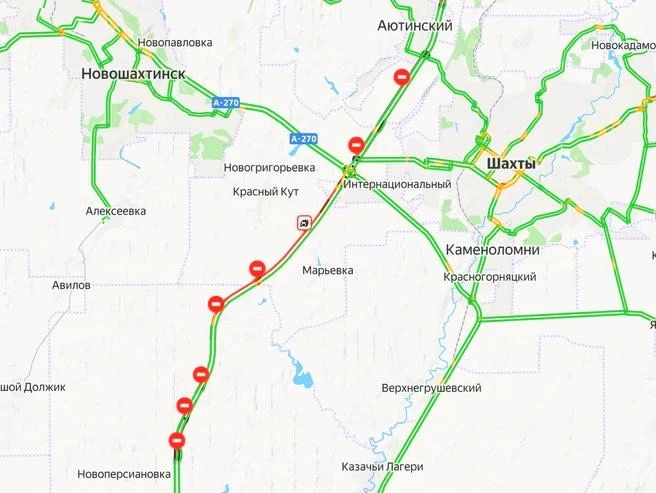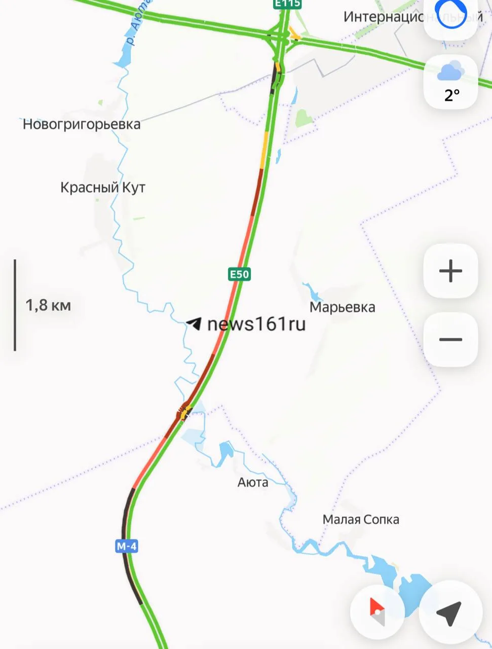 Стоит направление в сторону Ростова — от Аюты до Шахт, следует из данных сервиса «Яндекс Карты». По его данным, на этом участке ведутся дорожные работы, также произошло одно ДТП.