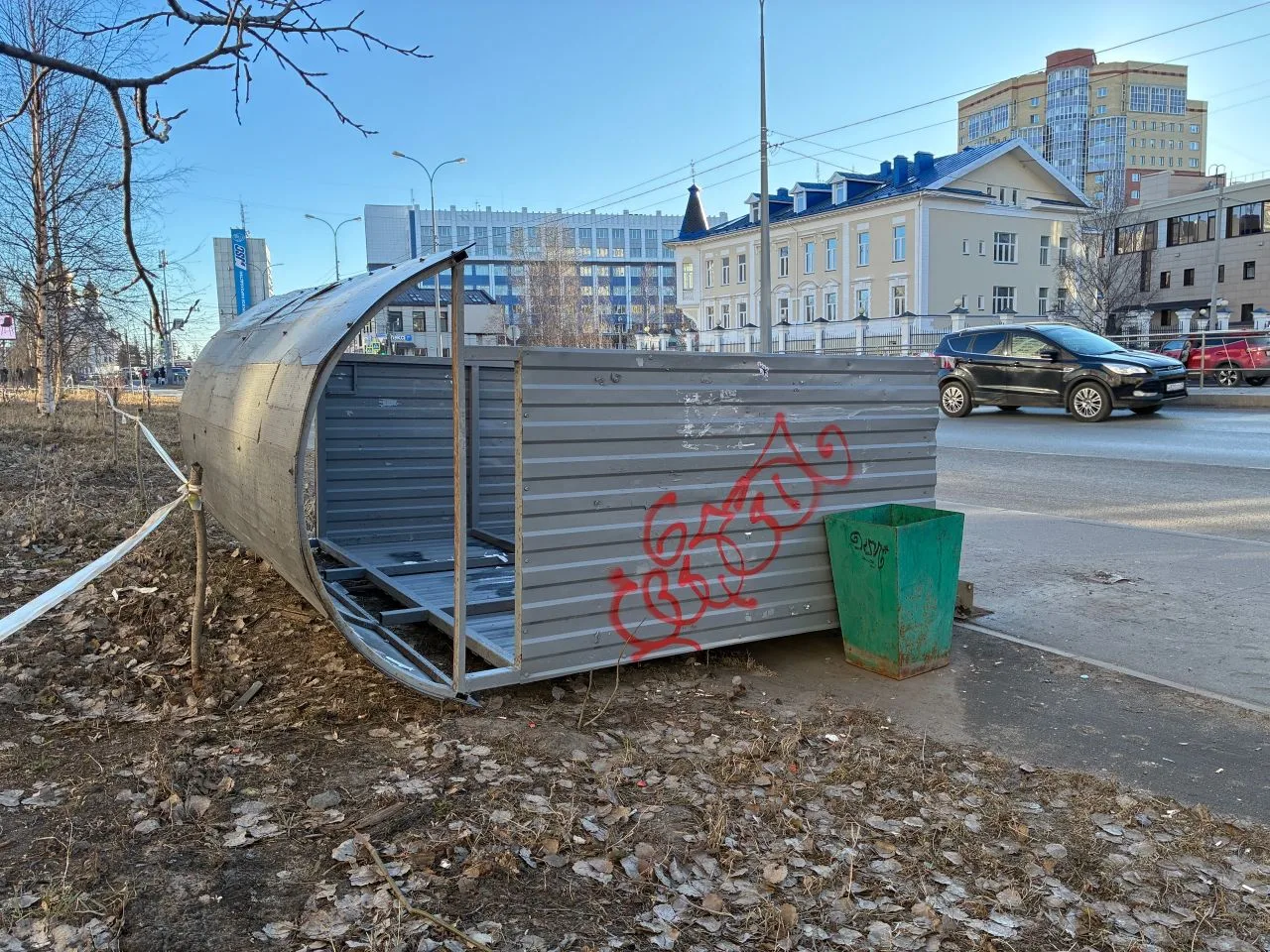Очередная автобусная остановка в Архангельске не выдержала сурового северного климата.