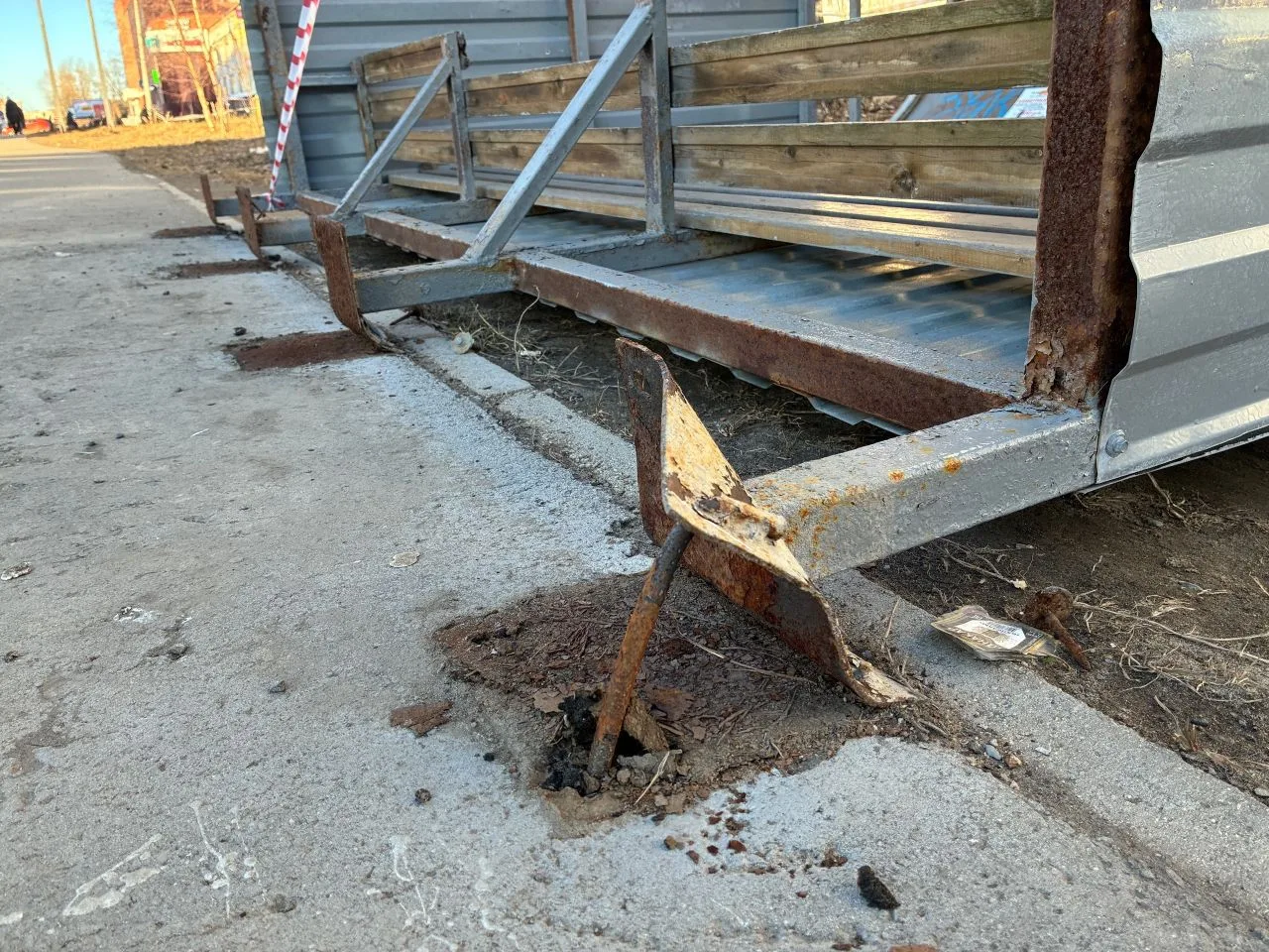 Сгнившую конструкцию сдуло ветром на улице Выучейского, напротив дома номер 26.