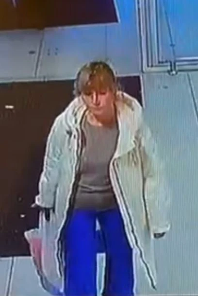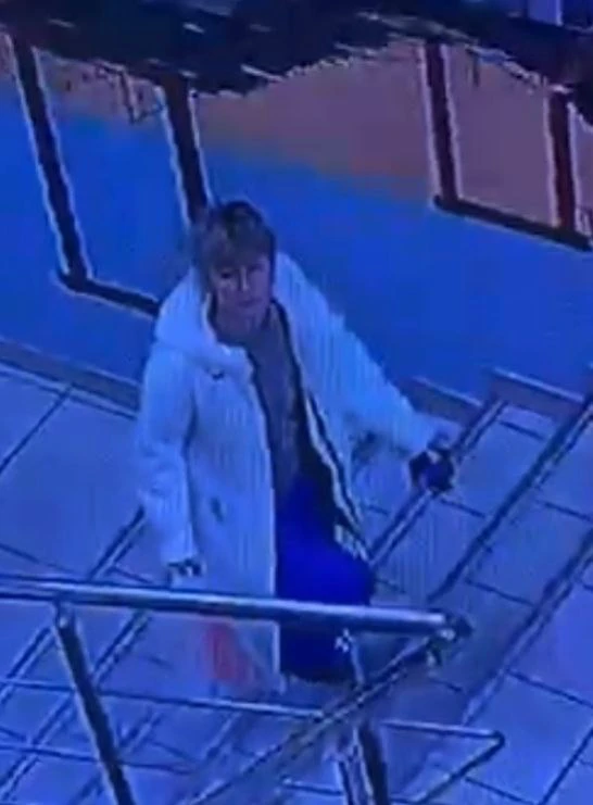 На вид: 35-40 лет, среднего телосложения, волосы светлые, длинные. Была одета: куртка белого цвета удлиненная с капюшоном, джинсы синего цвета, кофта зеленого цвета, туфли черного цвета.
