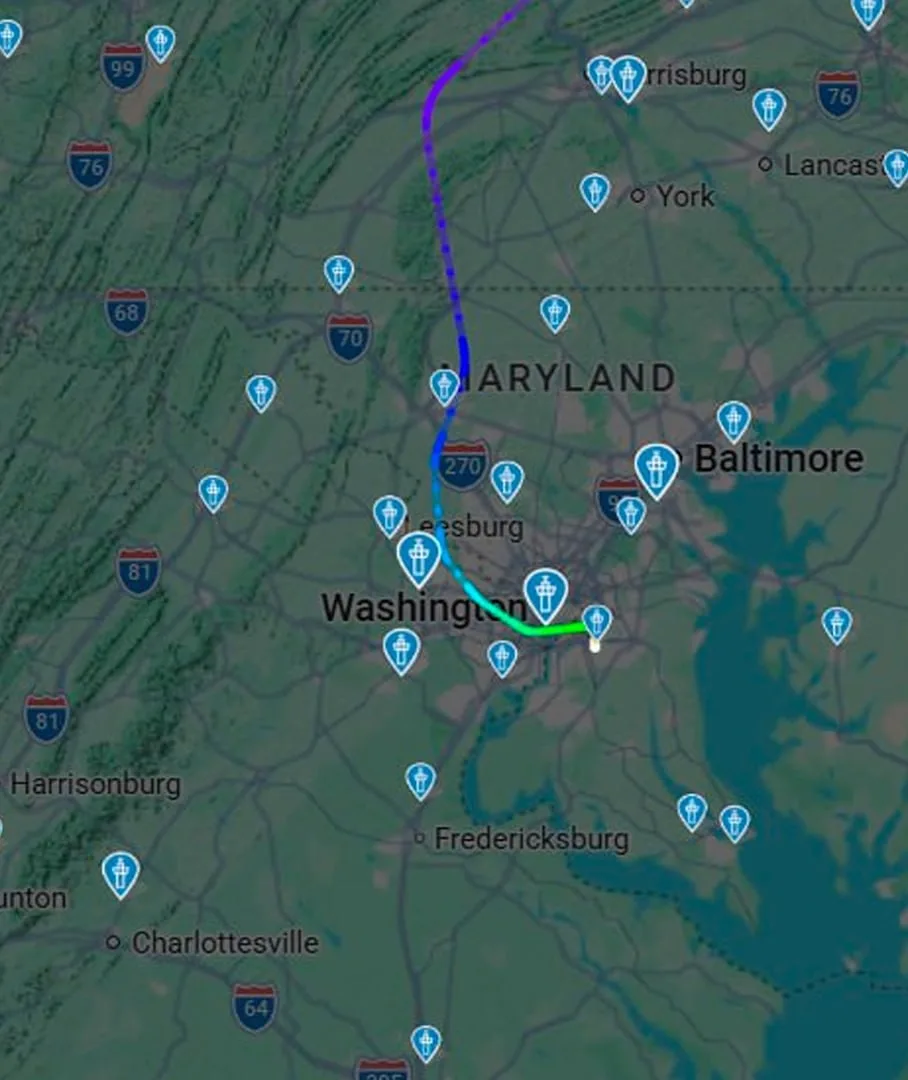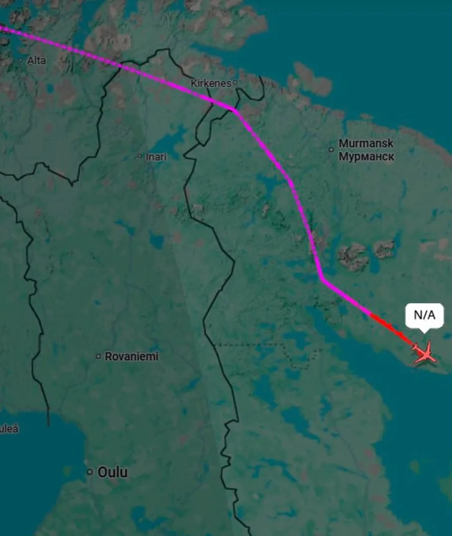 По данным СМИ, номер или принадлежность борта не отображаются на сервисе Flightradar. По данным трекинга, борт далее пролетел над Архангельской и Кировской областями, затем — в районе Уфы.