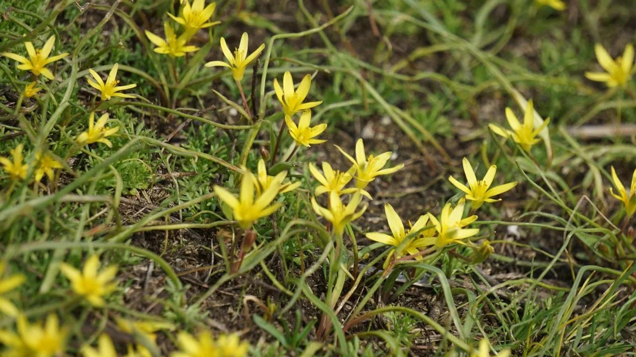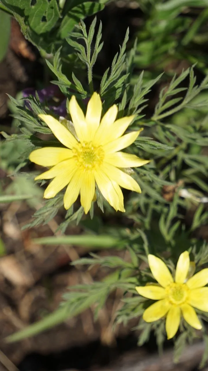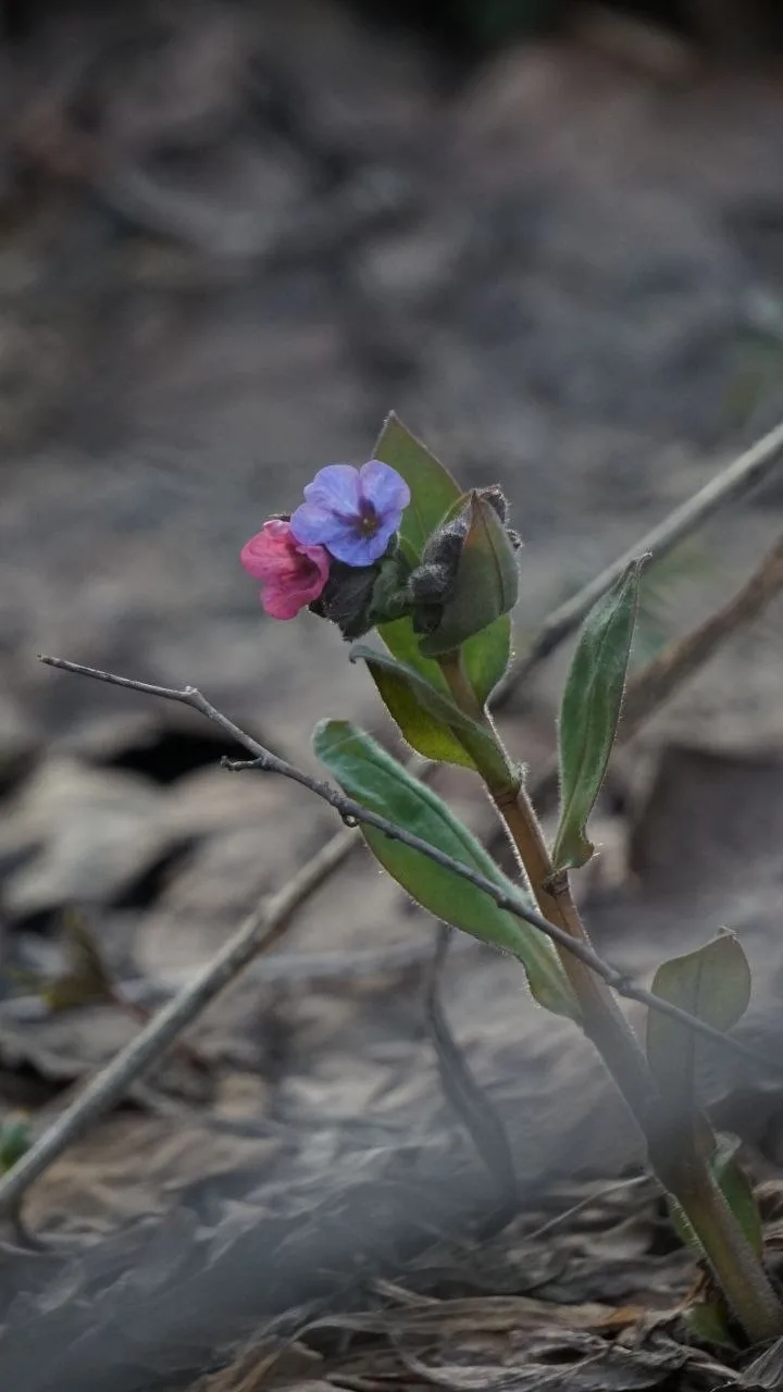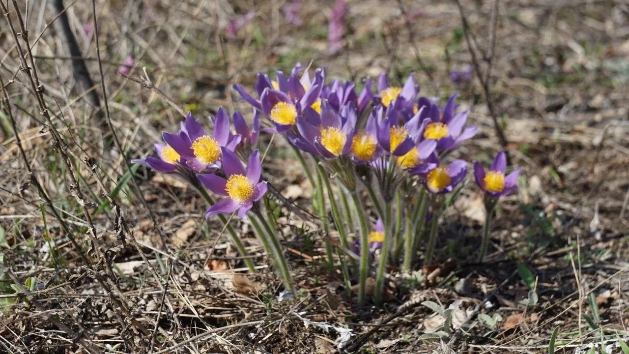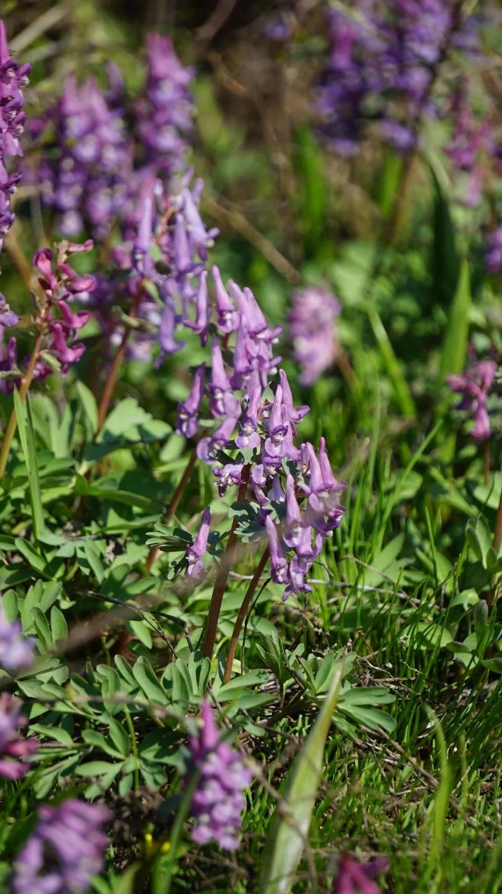 Природа пока не балует разнообразием — только контрасты: тёмная земля и яркая зелень, лиловый и золотистый, белый лёд и синяя вода на проталинах.