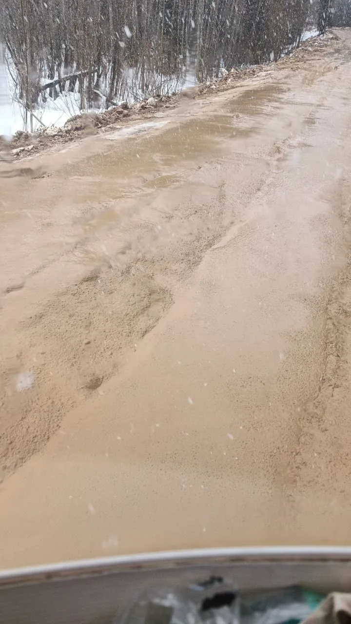 Местные жители пишут, что указанная дорога, ведущая на склад ИК-7, полностью перекрыта, подтапливает участки домов