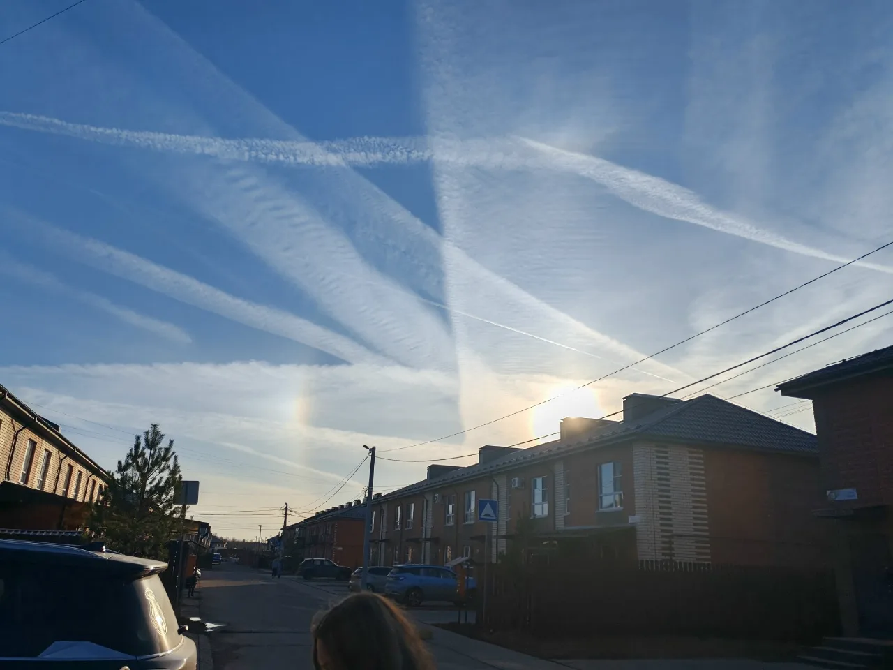 Вот такая вот геометрическая феерия сегодня в небе + гало