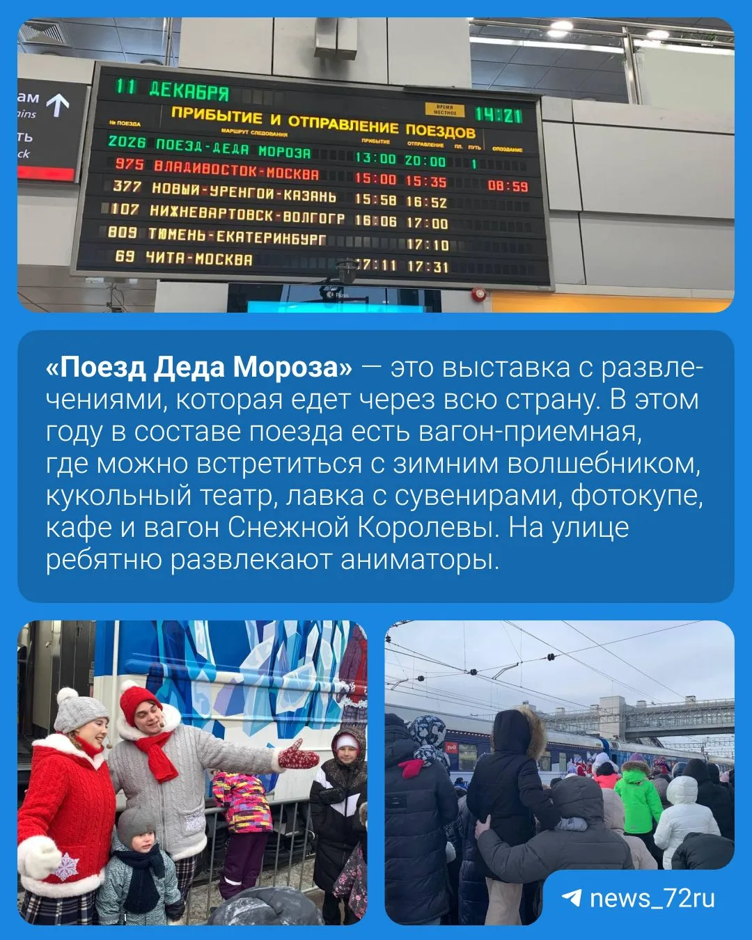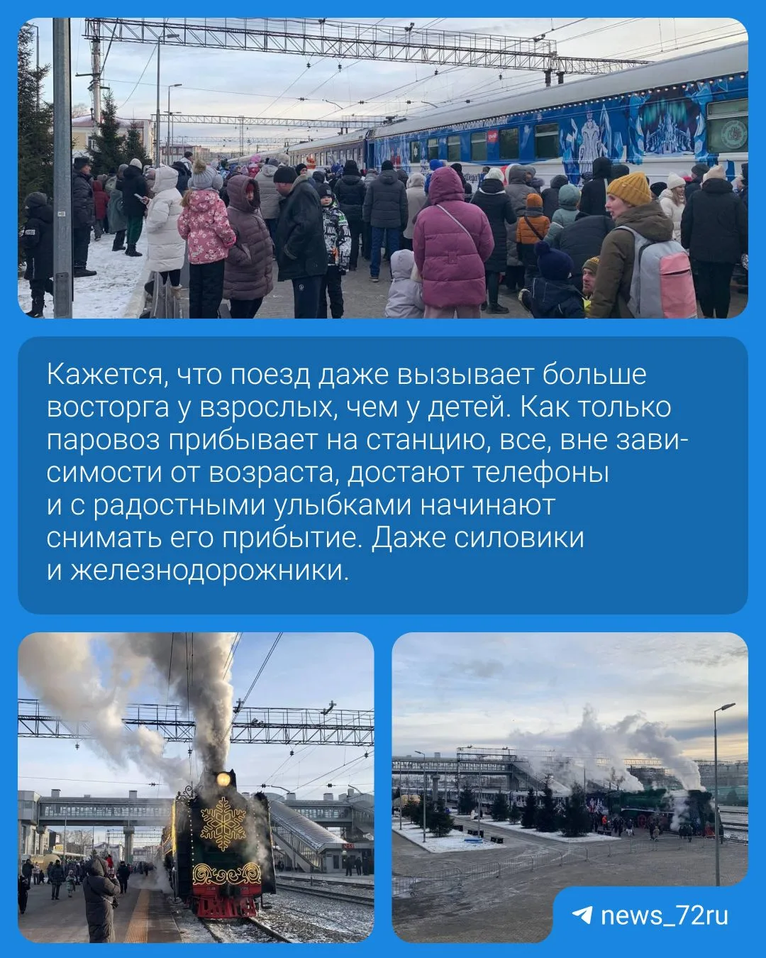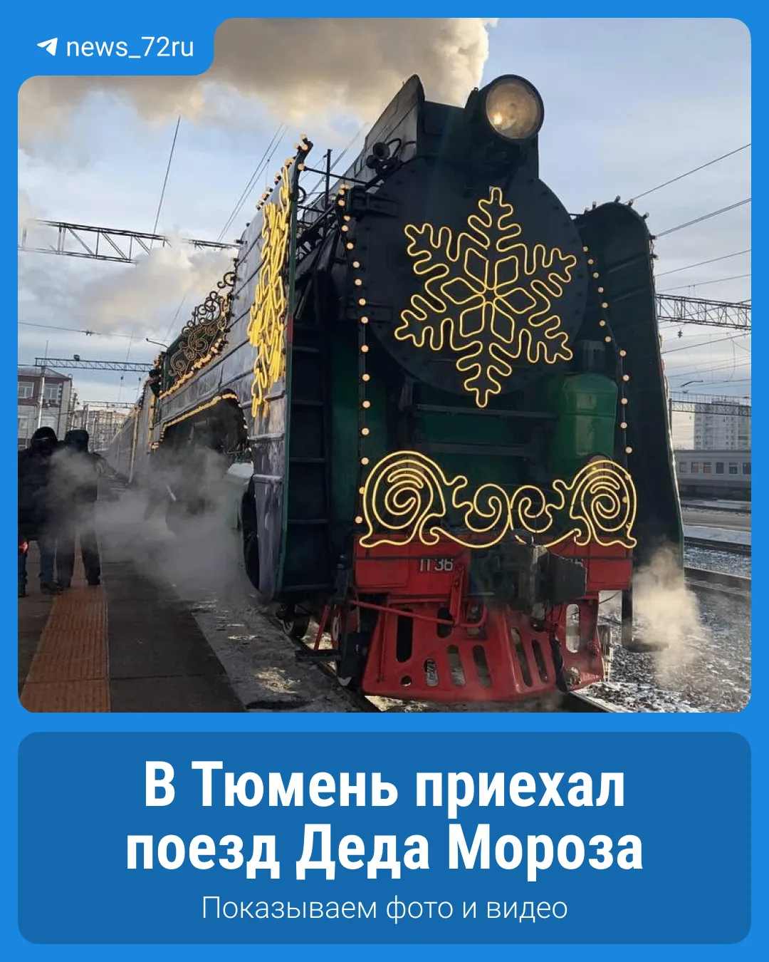 🎄 В Тюмень прибыл поезд Деда Мороза. Он пробудет в городе до 20:00.