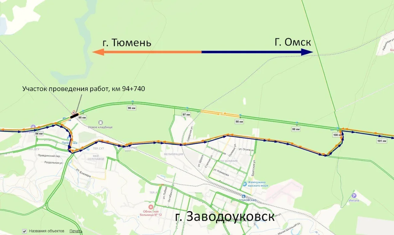 «Движение в данном районе будет осуществляться с перекрытием интервалами 15 минут и с периодическим пропуском транспортного потока. Объезд в направлении Омск и Тюмени возможен через Заводоуковск, съезды на региональную автодорогу расположены на км 94 и км 100», — сообщили представители ФКУ «Уралуправтодор»