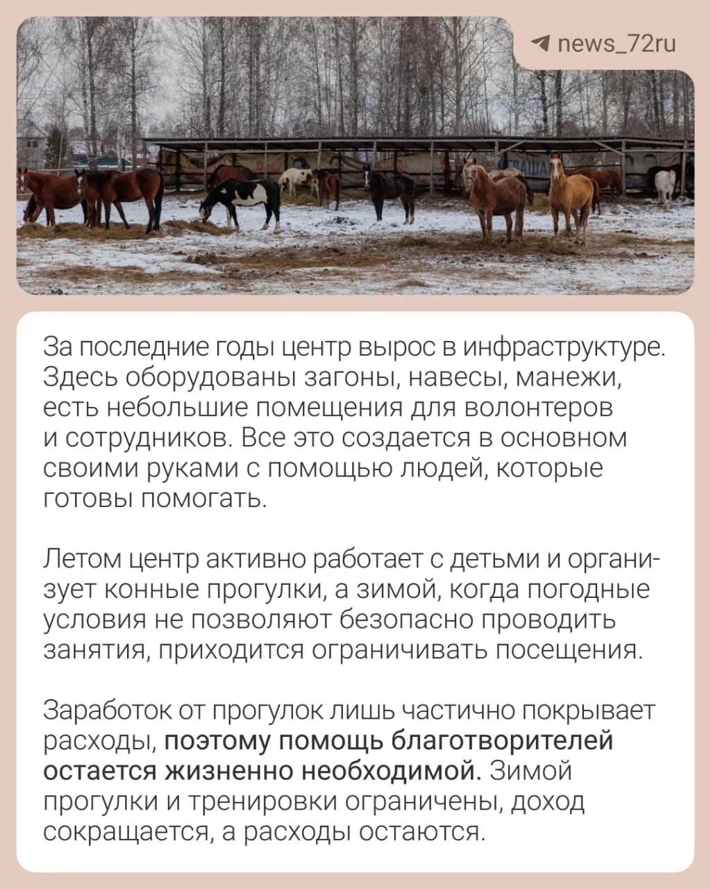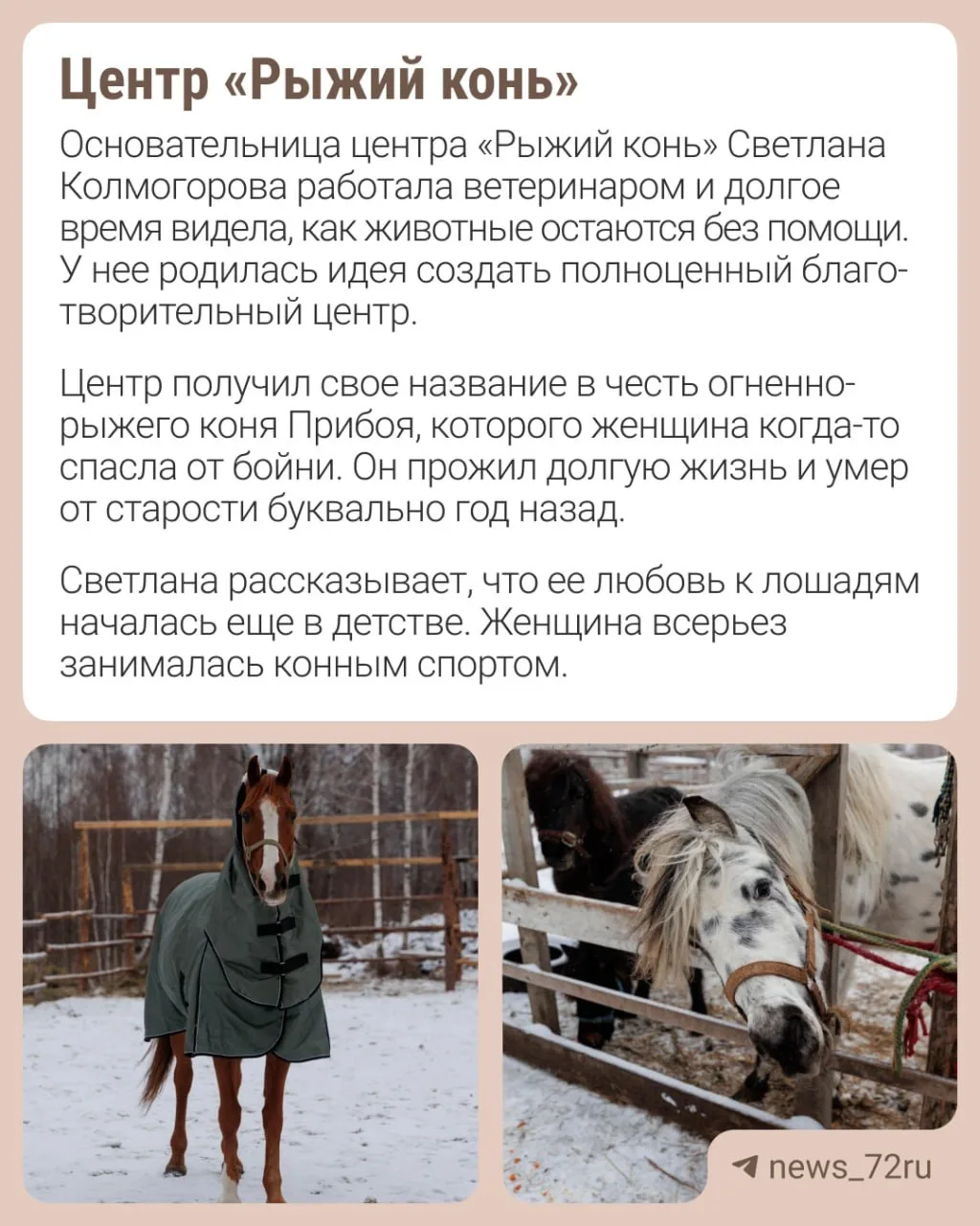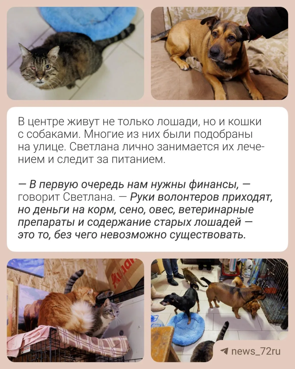 Этот центр — не просто приют. Это пространство, где сочетаются любовь к животным, спорт и труд, а главное — вера в то, что каждое живое существо заслуживает достойной жизни и старости. Как на одной территории уживаются лошади, кошки и собаки — рассказываем в карточках.