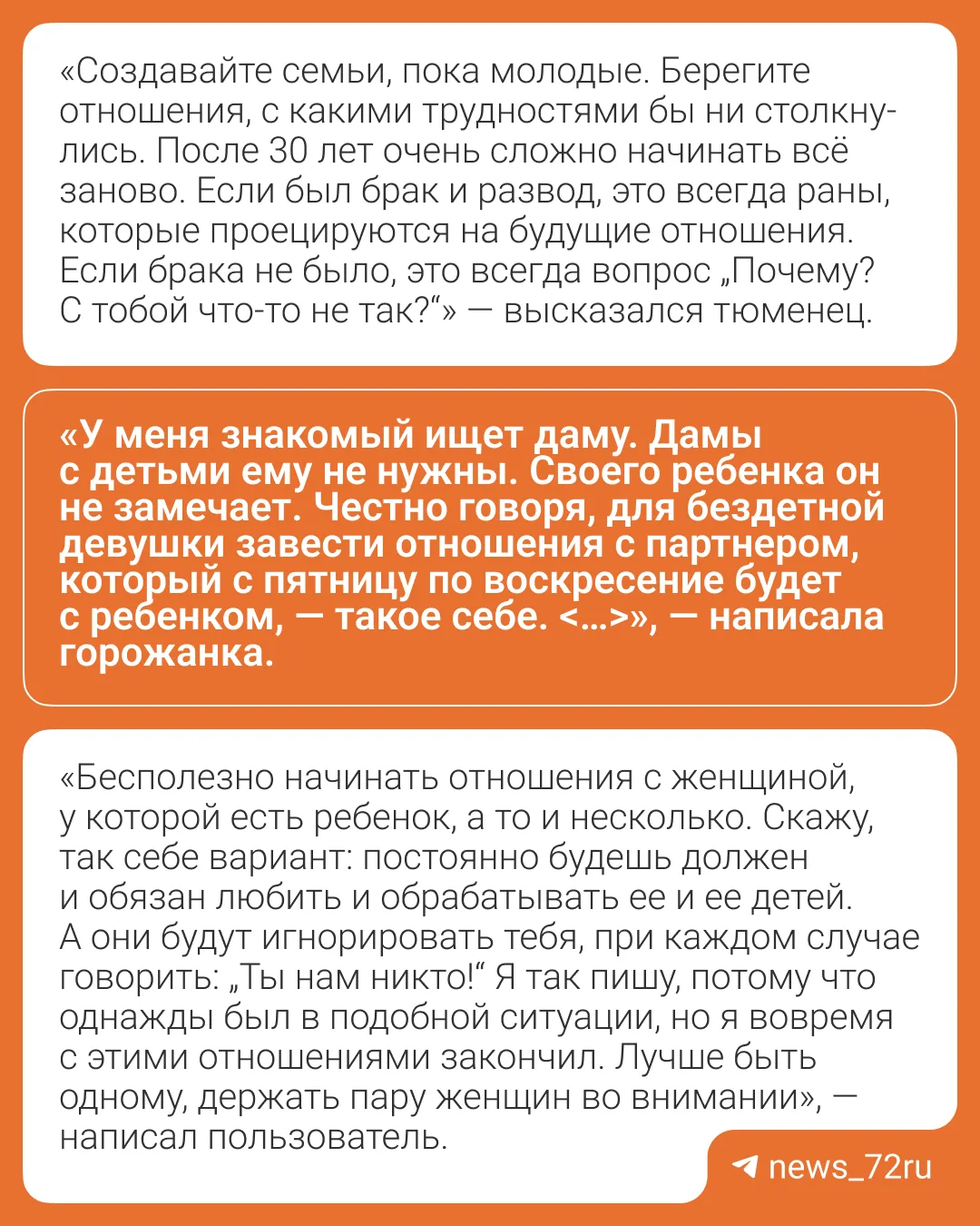 Также горожане затронули тему женщин с детьми и стоит ли вообще с ними вступать в отношения.