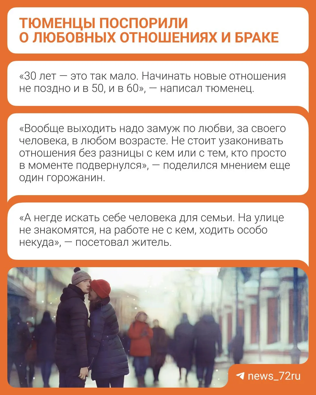 «Создавайте семьи, пока молодые. Берегите отношения, с какими трудностями бы ни столкнулись. После 30 лет очень сложно начинать всё заново», — высказался тюменец.