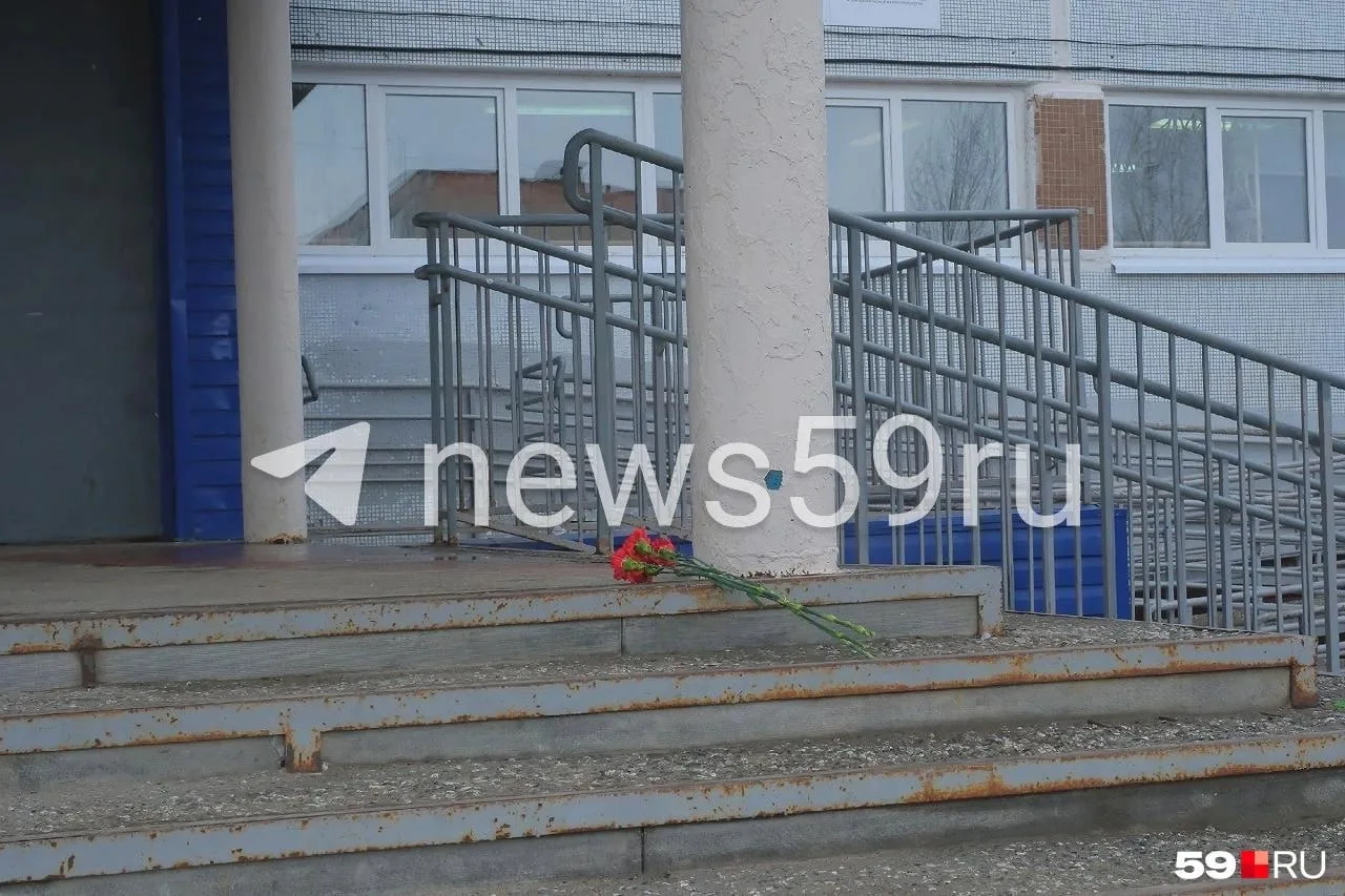 В добрянской школе, где случилось ЧП, сократили уроки первой смены и отменили занятия второй смены. Местные жители устроили стихийный мемориал.