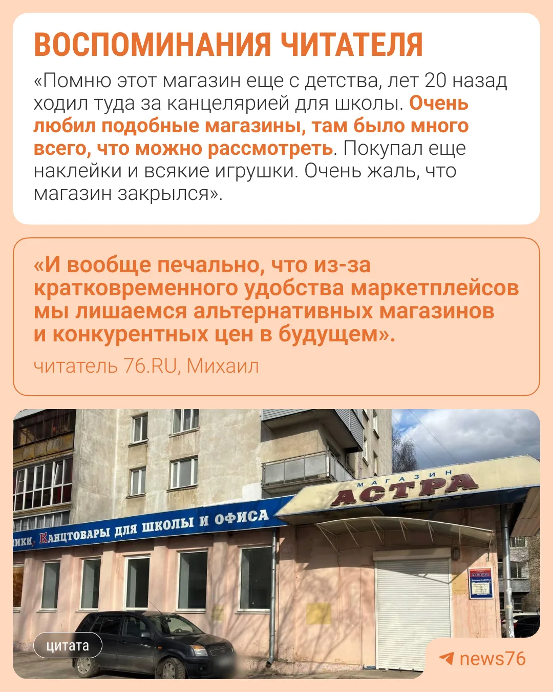 В «Астре» школьники до расцвета маркетплейсов закупались канцтоварами к школе и приходили поглазеть на многообразие всякой всячины. Местных радовал такой магазин прямо у дома, где можно купить всякую мелочь для домашних нужд. Но вот эпоха прошла...