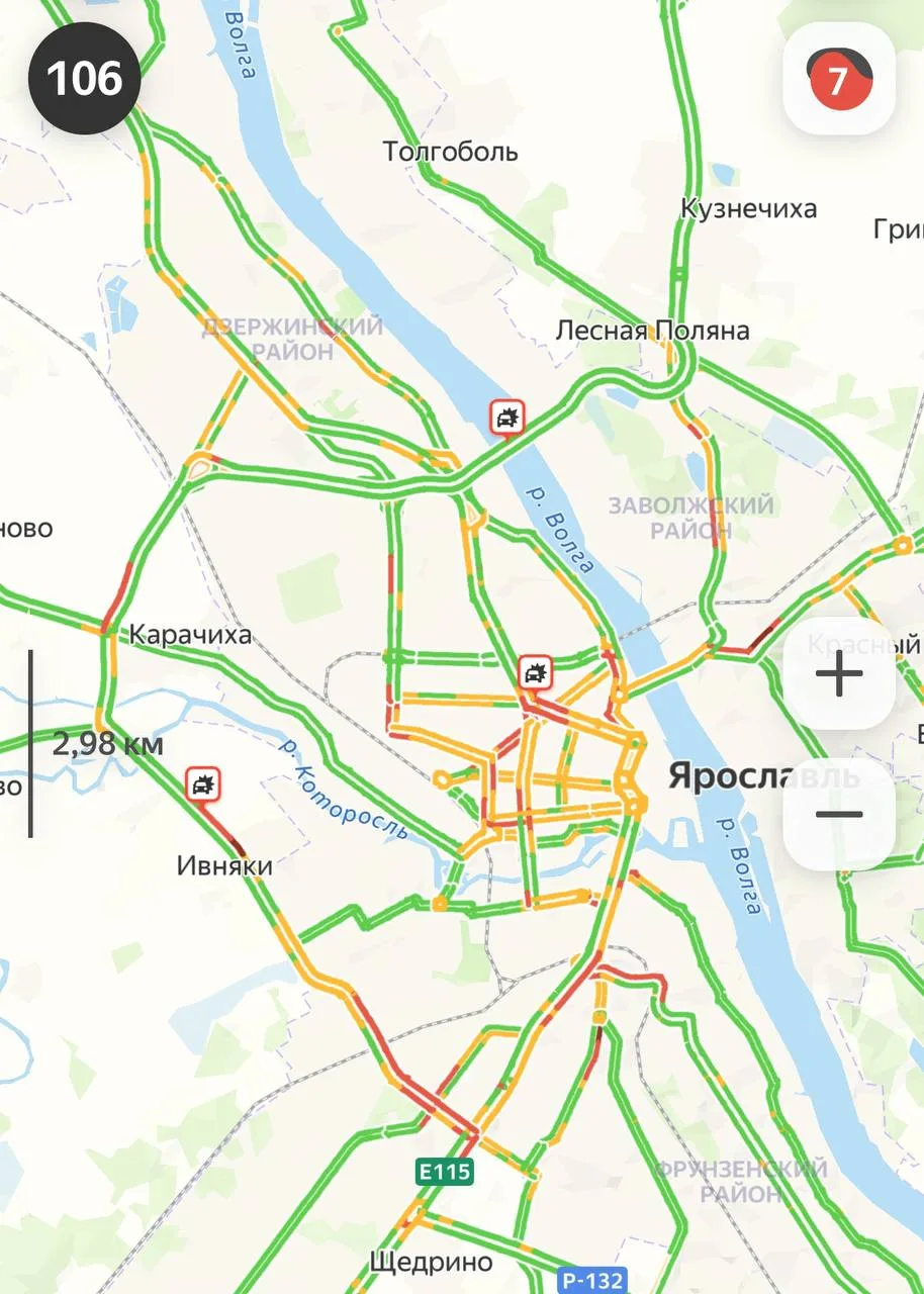 🥲 7 баллов сейчас на дорогах Ярославля