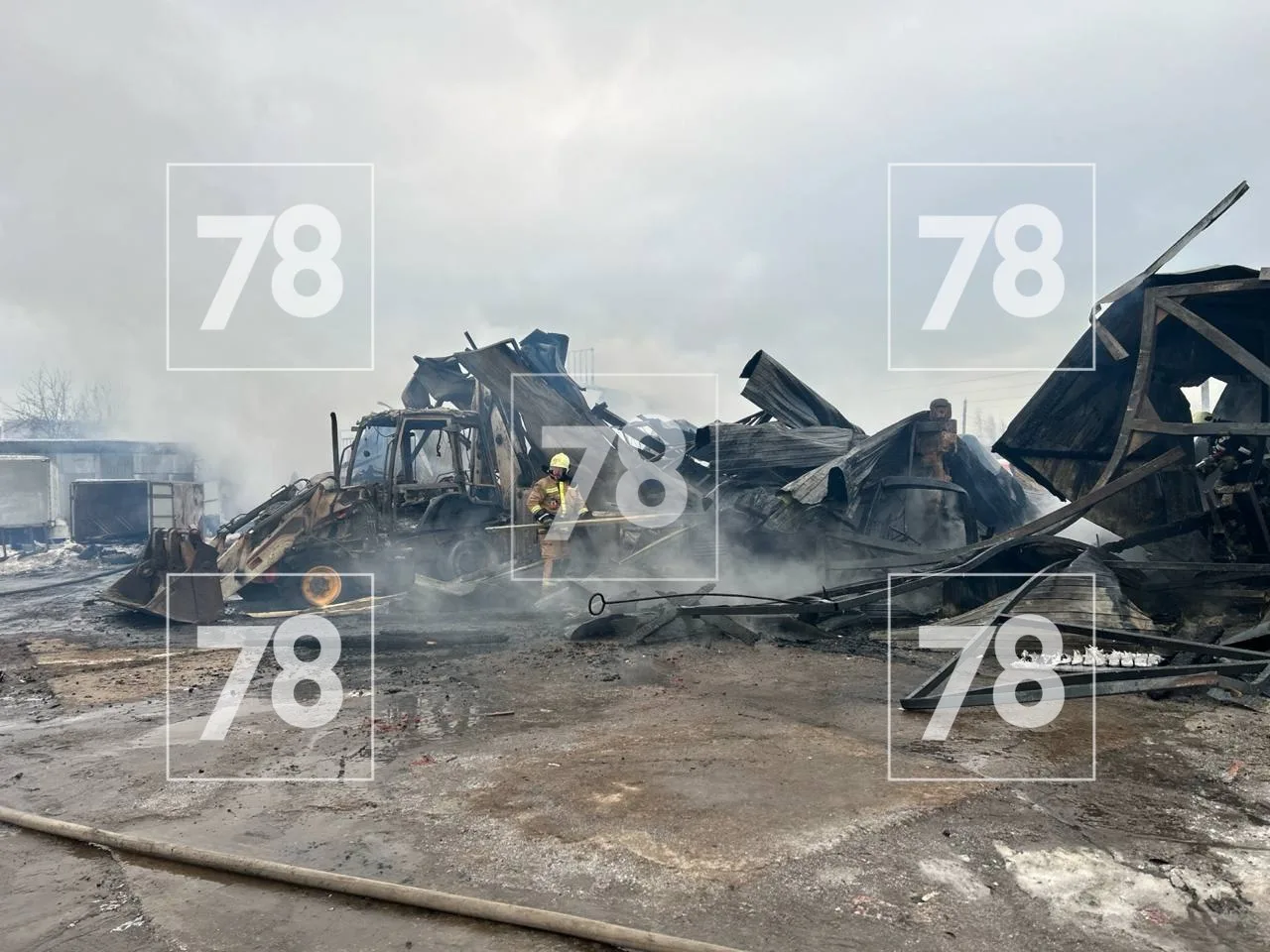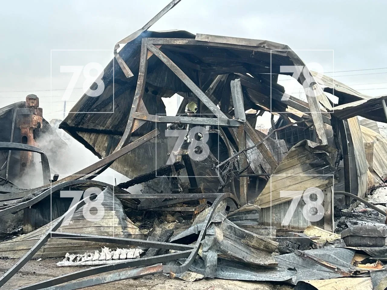 По данным 78, в ангаре хранились пять баллонов с газом. Три баллона с пропаном взорвались. Рискуя жизнью, спасатели пробрались к ещё двум баллонам с ацетиленом. Это ещё более взрывоопасный газ, используемый при сварочных работах. Взрыв этих баллонов мог быть сокрушительным. Спасателям удалось вынести их.