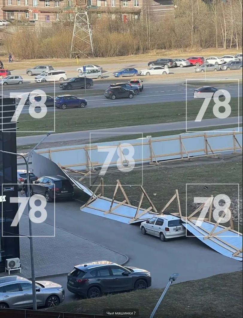 Пять машин получили повреждения из-за сильного ветра в Петербурге. Люди, к счастью, не пострадали, сообщили 78 в МЧС.