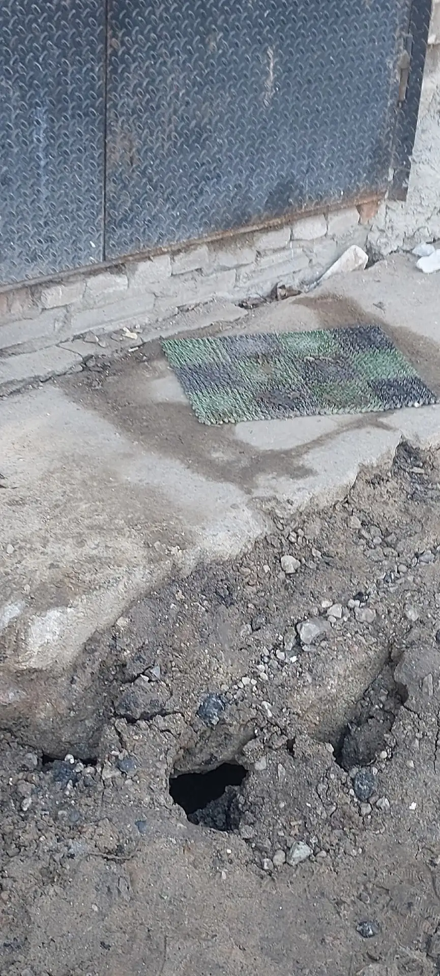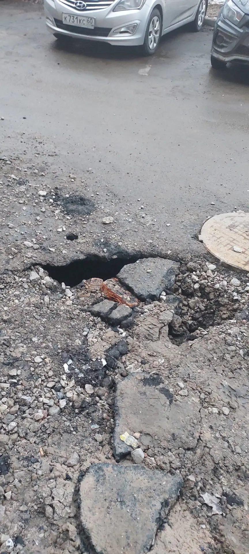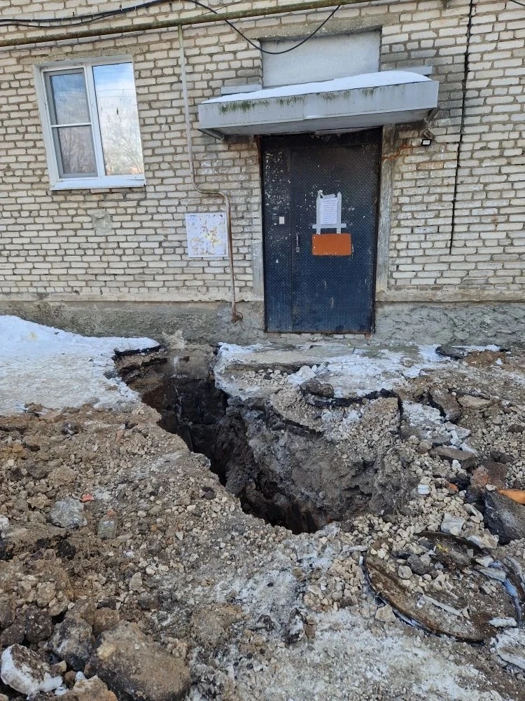 Из-за состояния труб происходит подмыв грунта — прямо у дома образуются провалы и ямы глубиной до 2 метров. Асфальт разрушается на глазах. Жители обращают внимание: если сравнить уровень с соседним домом №11 — разница уже заметна. По словам людей, дом буквально «проседает».