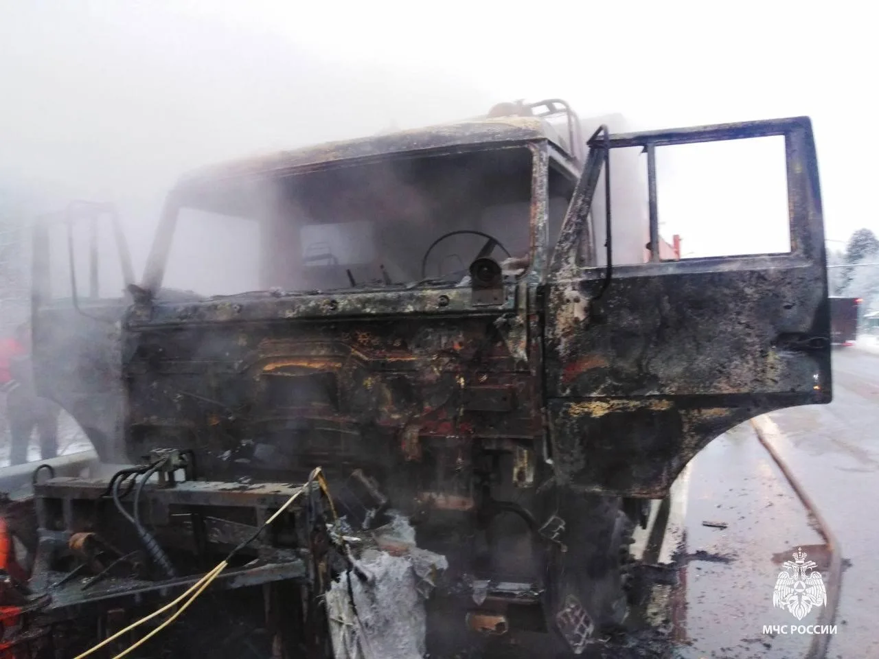 На федеральной трассе в Пустошкинском районе сгорел «КАМАЗ»