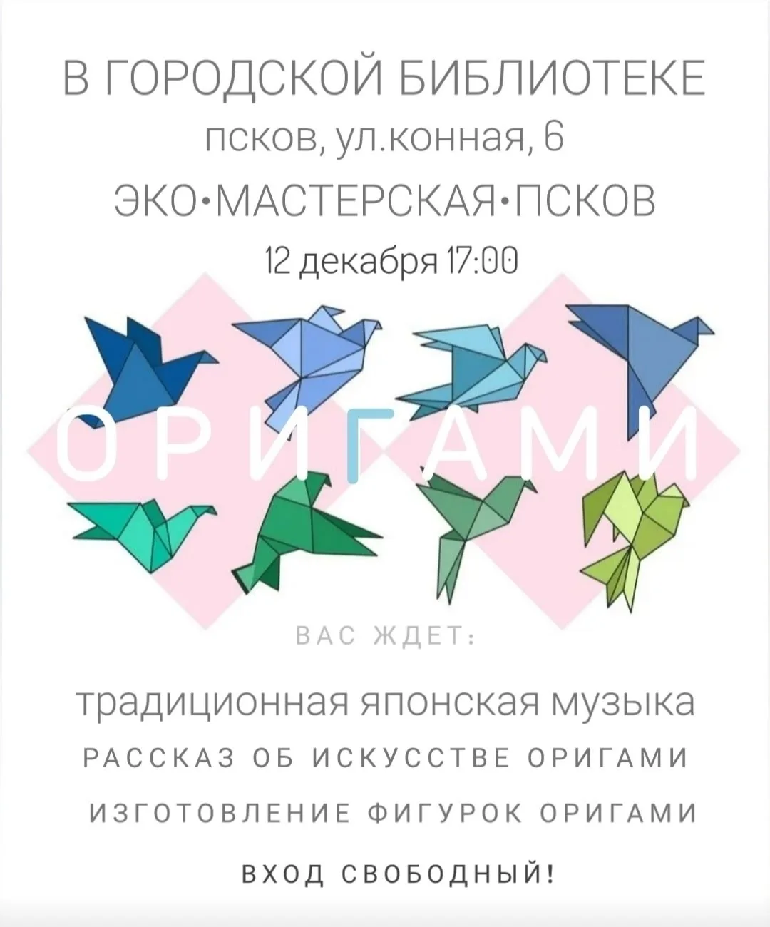 ОРИГАМИ в БИБЛИОТЕКЕ! 😲 12 декабря, в пятницу, в 17:00 вместе с Центральной городской библиотекой мы проводим открытый мастер-класс по оригами! 👏👏👏