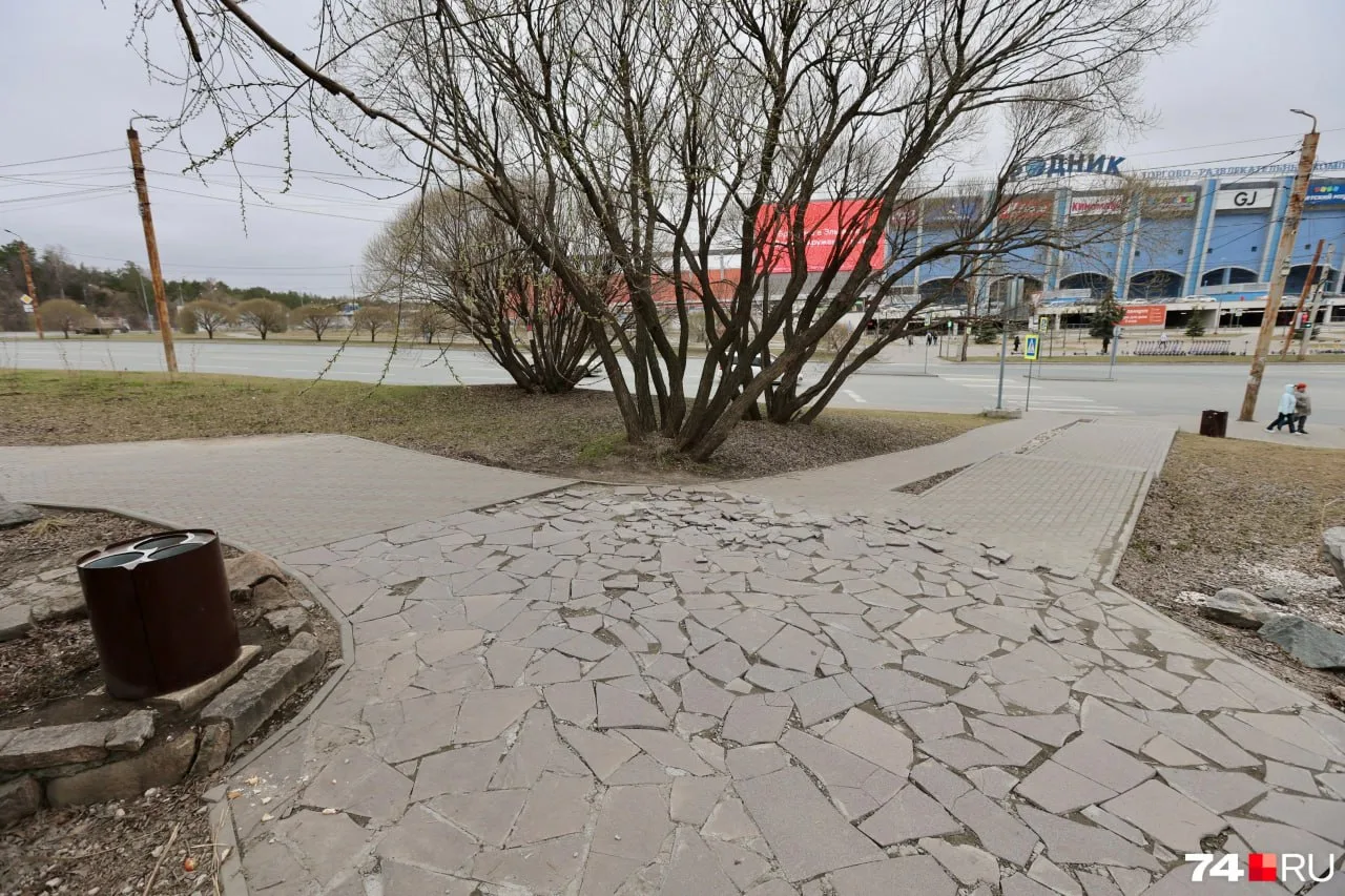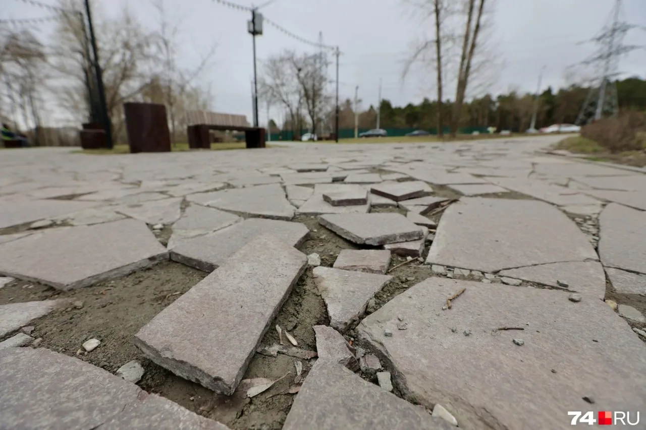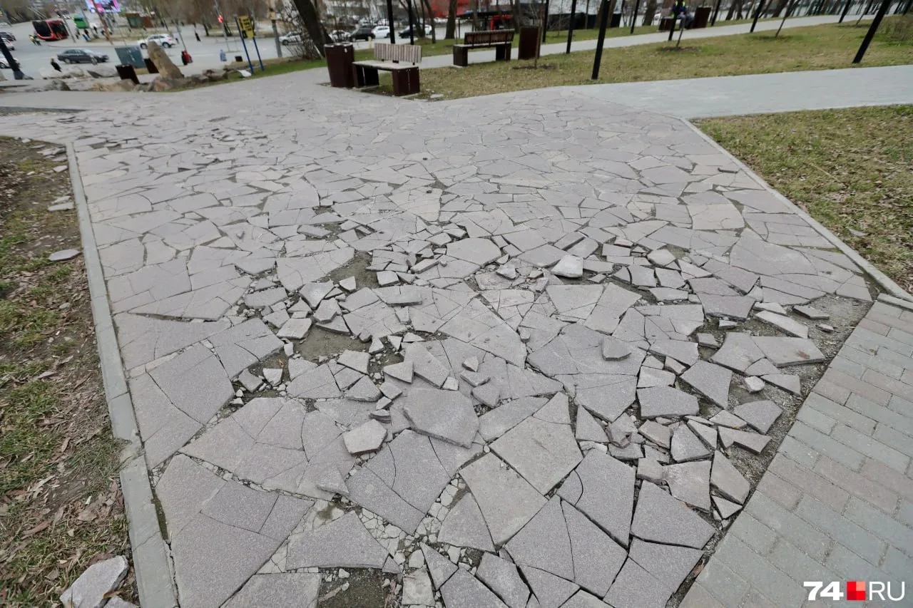 В открытом пару лет назад сквере около «Родника» развалилась плитка