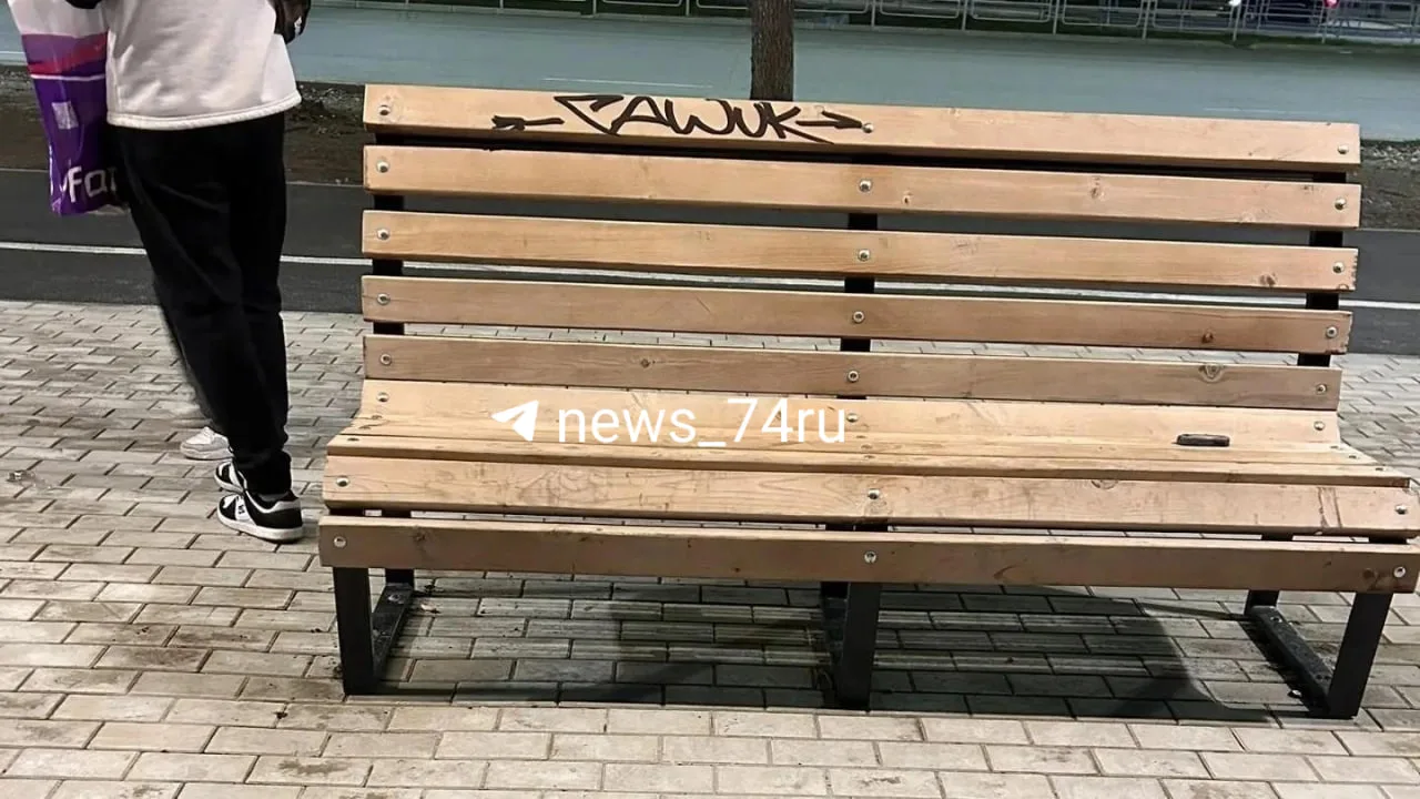 «Вчера вышли прогуляться в сквере, а на новых скамейках уже „красуются“ автографы вандала. Почерк похож на тот, что был на испорченных электрощитовых шкафах в центре города», — поделилась читательница @news_74ru.