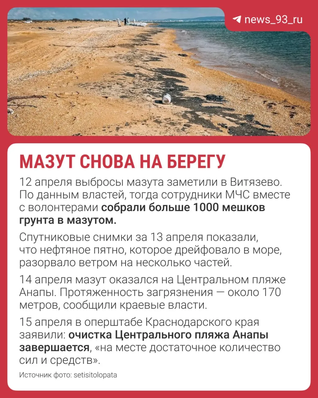 Что известно о новом эпизоде мазутной катастрофы — читайте в карточках наших коллег из @news_93_ru ⬆️
