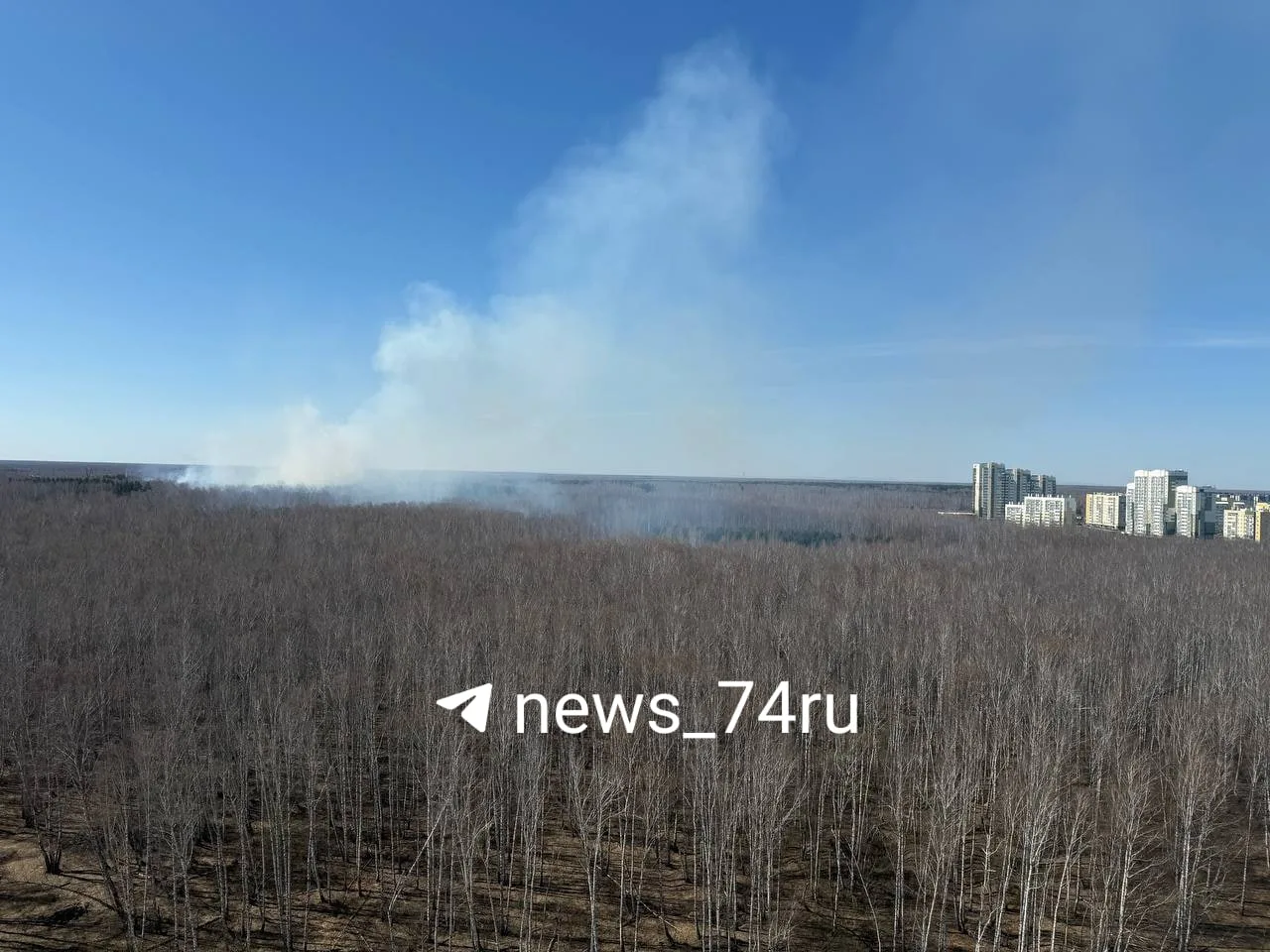 Читатели @news_74ru сообщают о пожаре в лесу в районе Паркового-2 и Ньютона