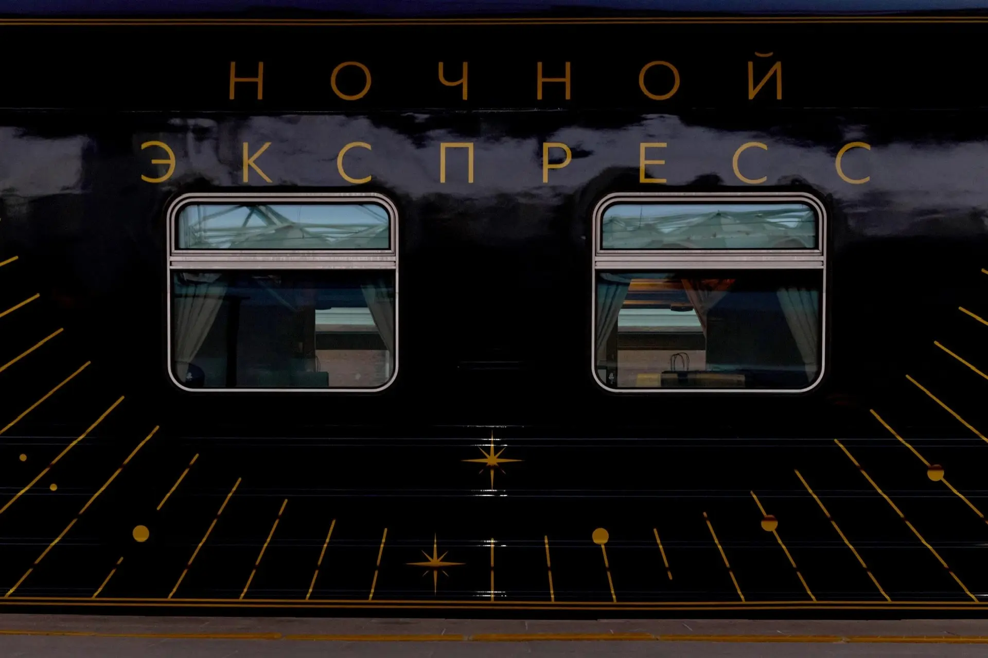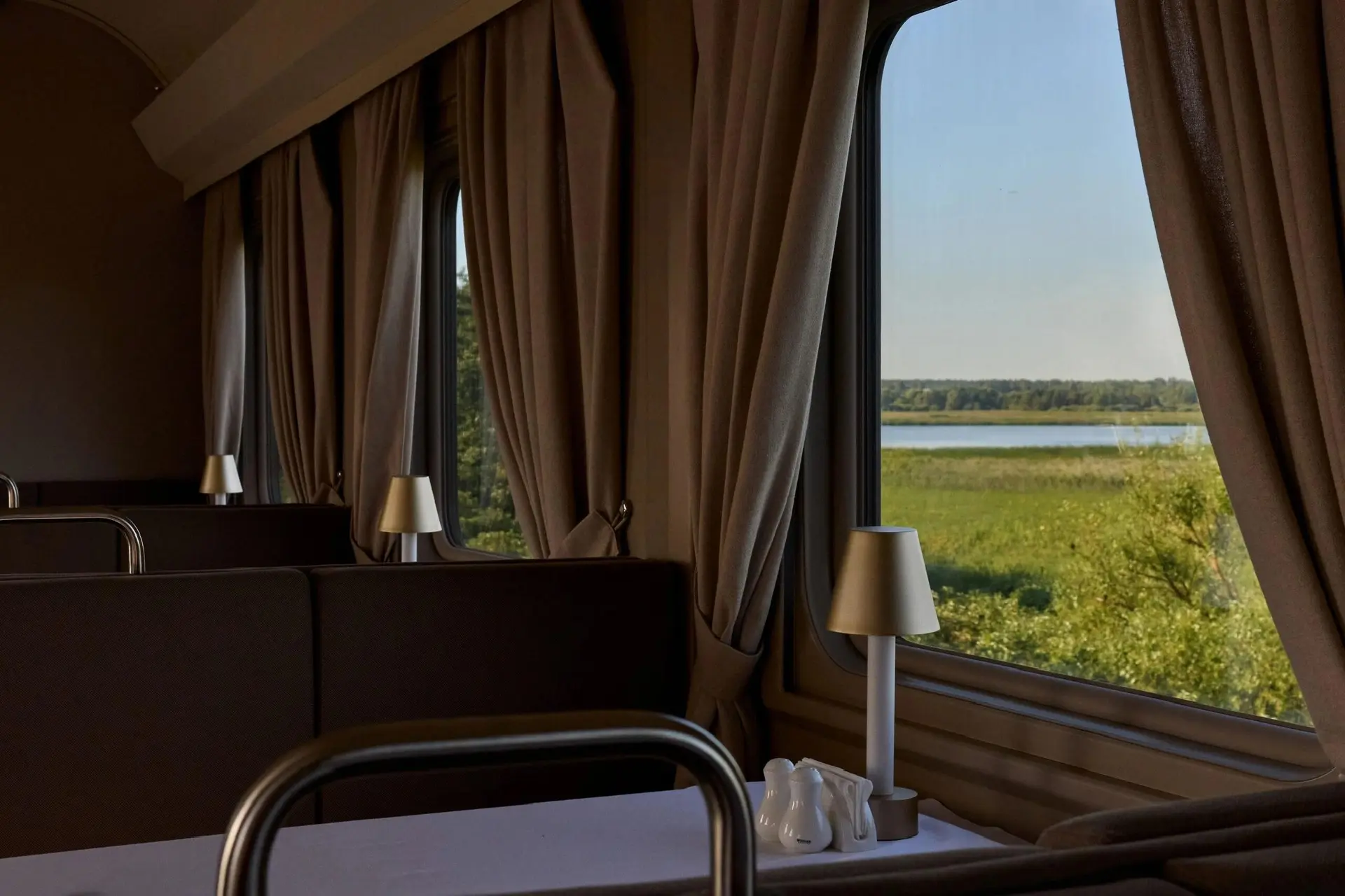 Интерьер вдохновлен эстетикой ар-деко. В вагоне-ресторане будут подавать изысканные вина и блюда высокой кухни от шеф-поваров. Пассажирам предоставляют постельное белье премиум-класса.
